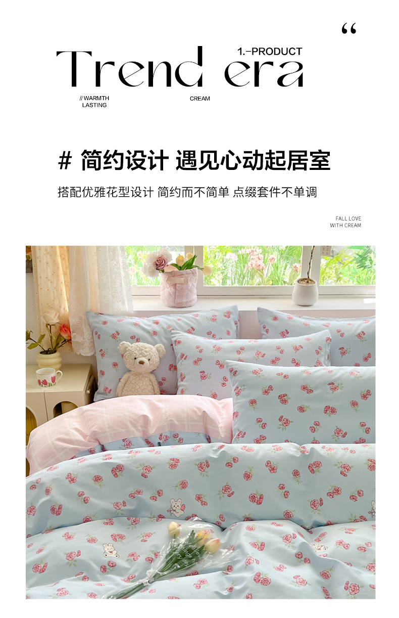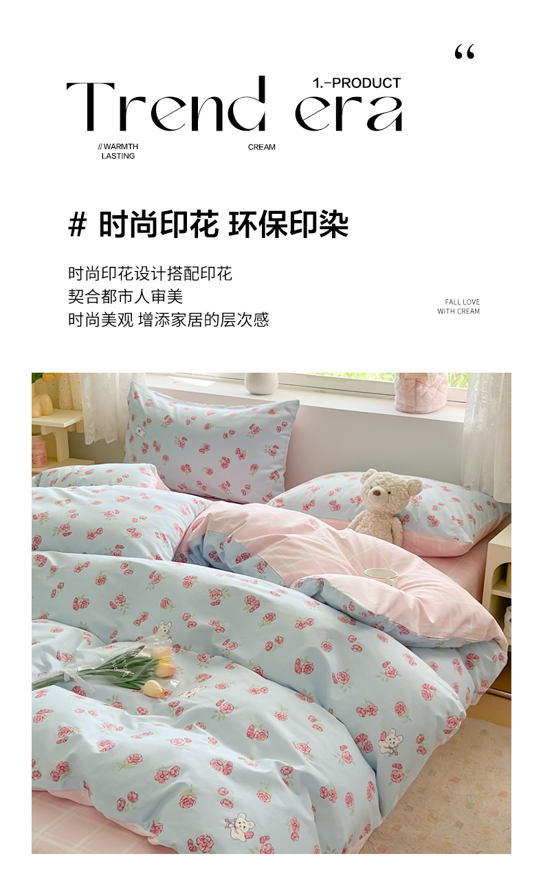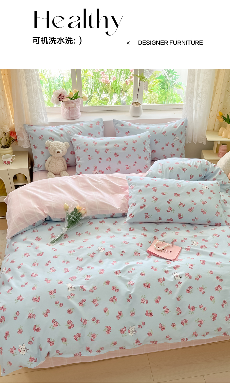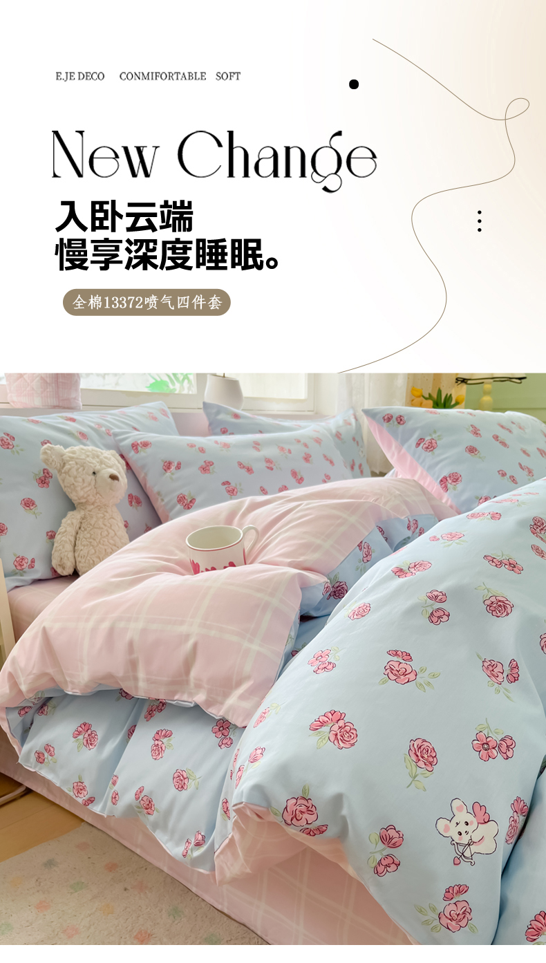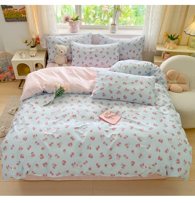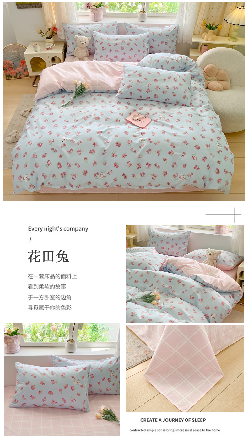 当前位置: 91家纺网 > 商品网购 > 床品套件 > 四件套 > 全棉普通四件套 > 洺兰家居 2025新款13372全棉四件套 花田兔