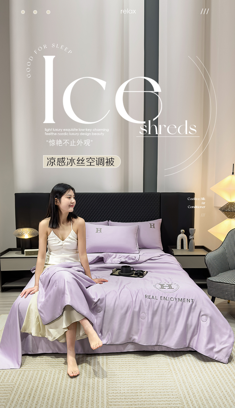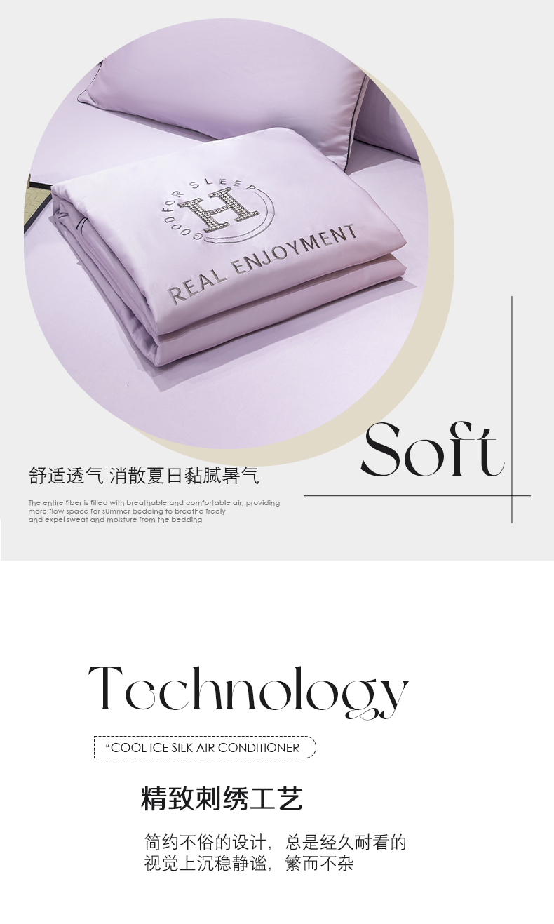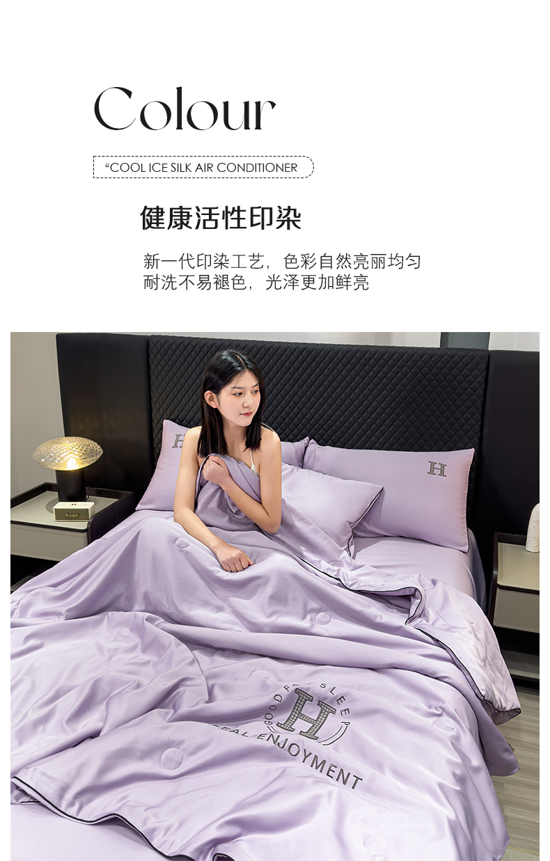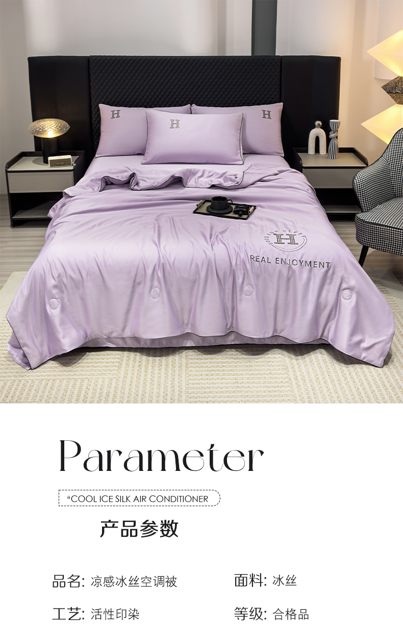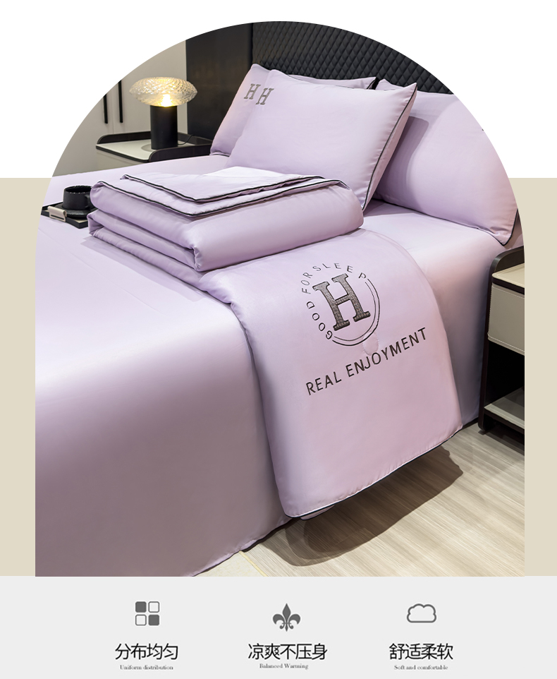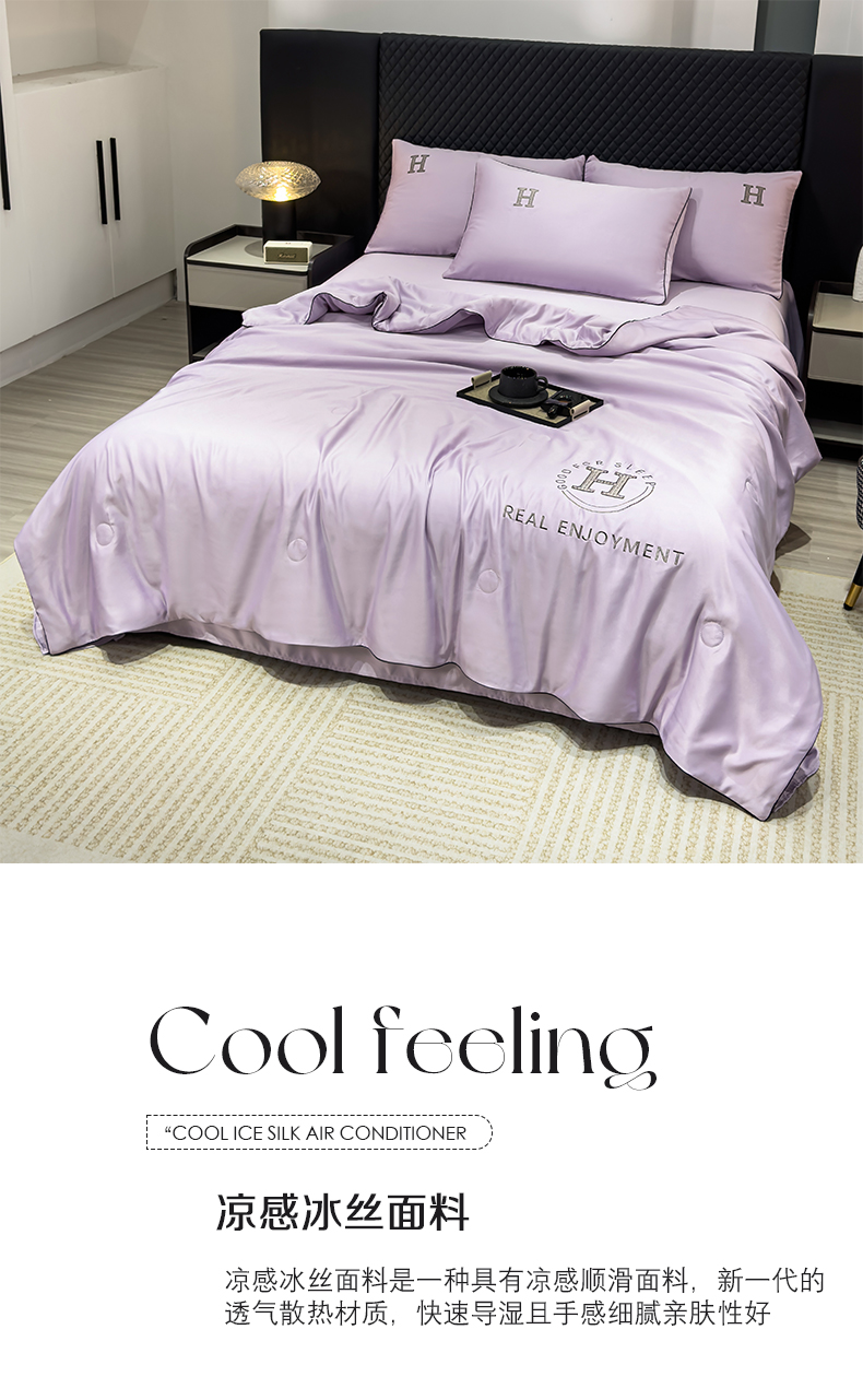 • 91家纺网 家纺一手货源 找家纺 星航家纺 2025新款轻奢夏被四件套晾感冰丝空调被水洗冰丝夏被 葡萄紫