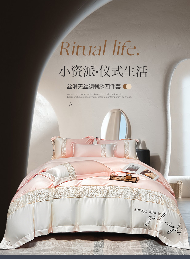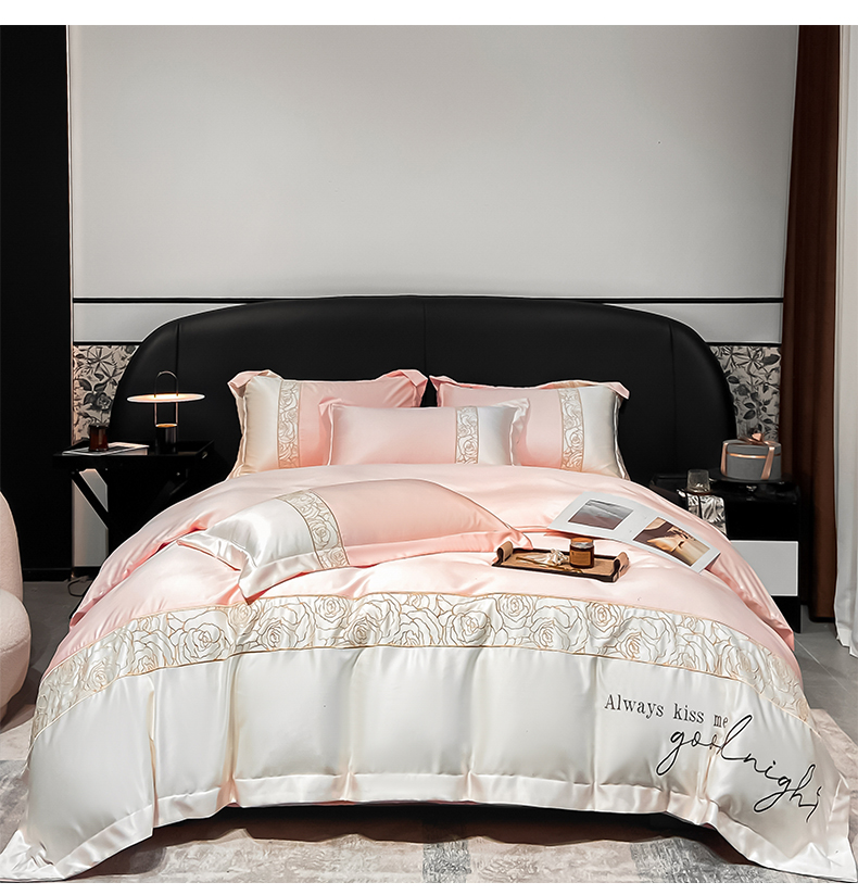 (总)博纳家纺 2025新款镂空大宽边拼角高级简奢款亲肤棉四件套-山水提花,繁星蓝,粉玉,高级灰,香槟,象牙白