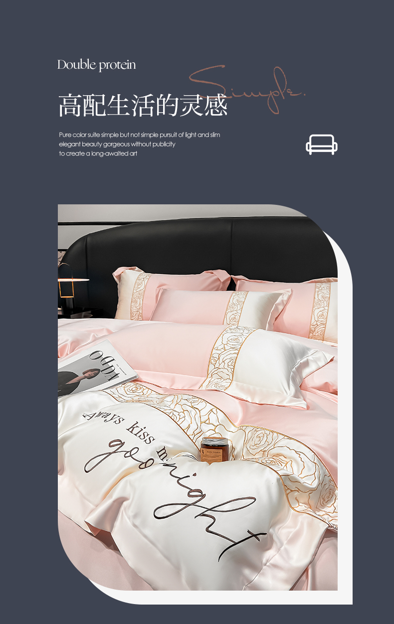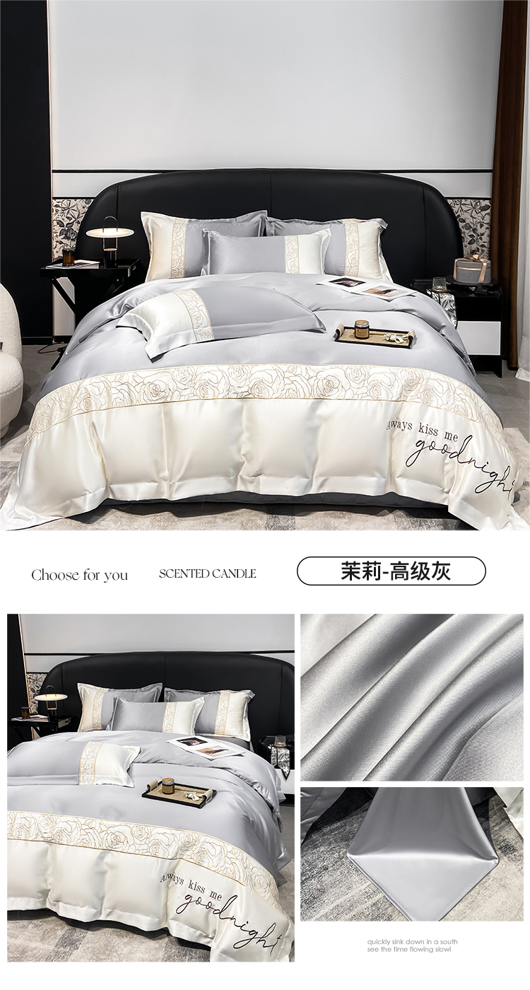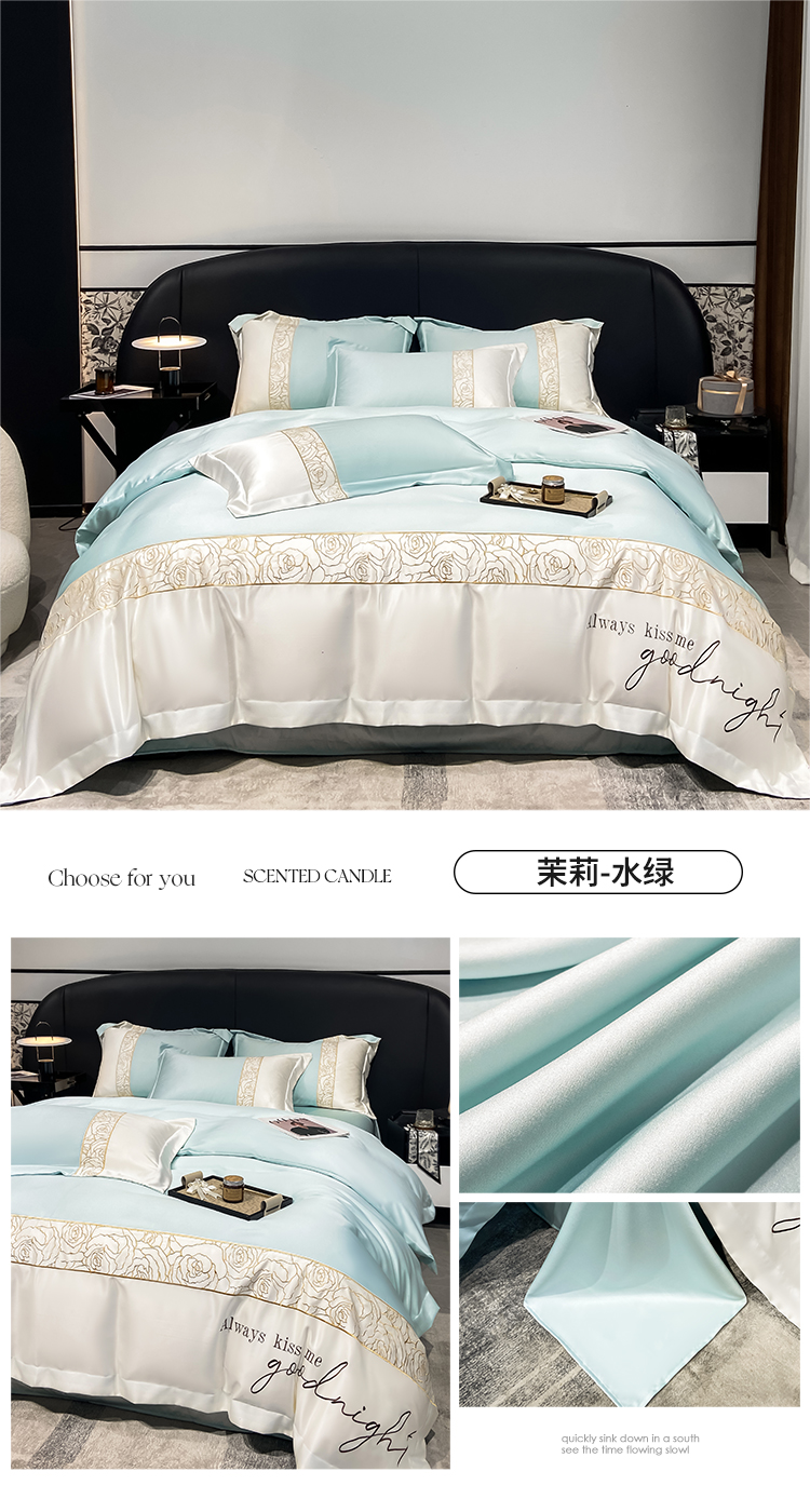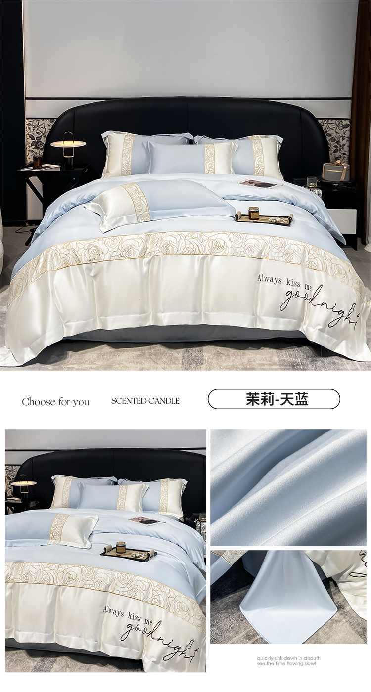 (总)博纳家纺 2025新款亲服棉宽边高级简奢款绣花四件套-盛世年华,宾利蓝,繁星蓝,粉玉,高级灰,香槟