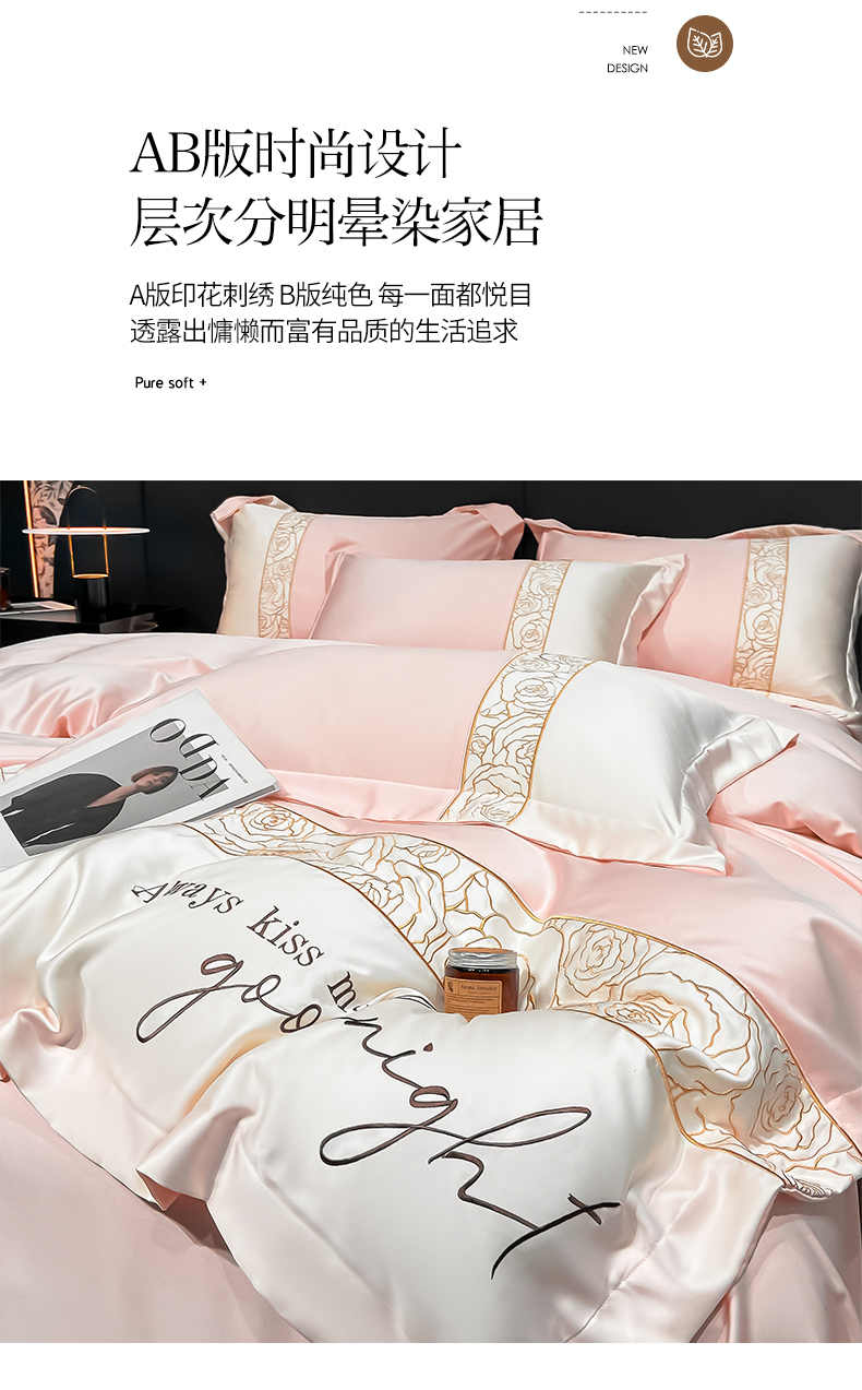 (总)博纳家纺 2026新款高端色织提花拼角绣花宽边亲肤棉四件套海韵系列,海韵-粉玉,海韵-绅士灰,海韵-香槟