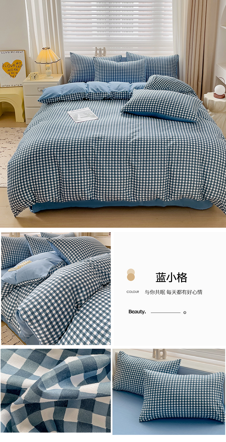 当前位置: 91家纺网 > 商品网购 > 床品套件 > 四件套 > 水洗棉四件套 > 楠沐家纺 2025新款亲肤柔软水洗棉磨毛四件套 蓝小格