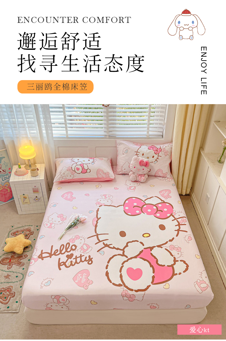 当前位置: 91家纺网 > 商品网购 > 床上用品 > 床笠 > 金爱家 2024新款全棉三丽鸥正版大版单品床笠 爱心kt