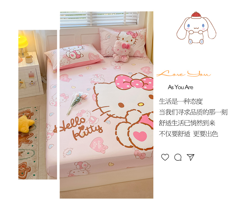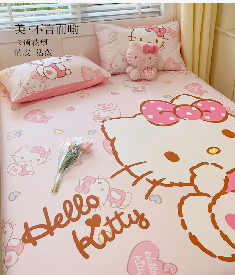 金爱家 2024新款全棉三丽鸥正版大版单品床笠 爱心kt