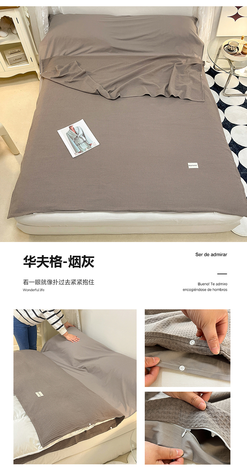 商品名称:沐辰 2024新款睡袋全棉A类华夫格睡袋 华夫格-烟灰