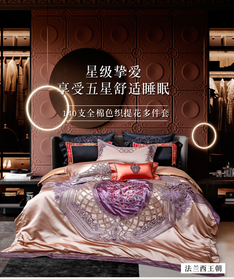 当前位置: 91家纺网 > 商品网购 > 床品套件 > 四件套 > 色织四件套 > (总)至爱今生 2024新款140支全棉色织提花四件套 法兰西王朝