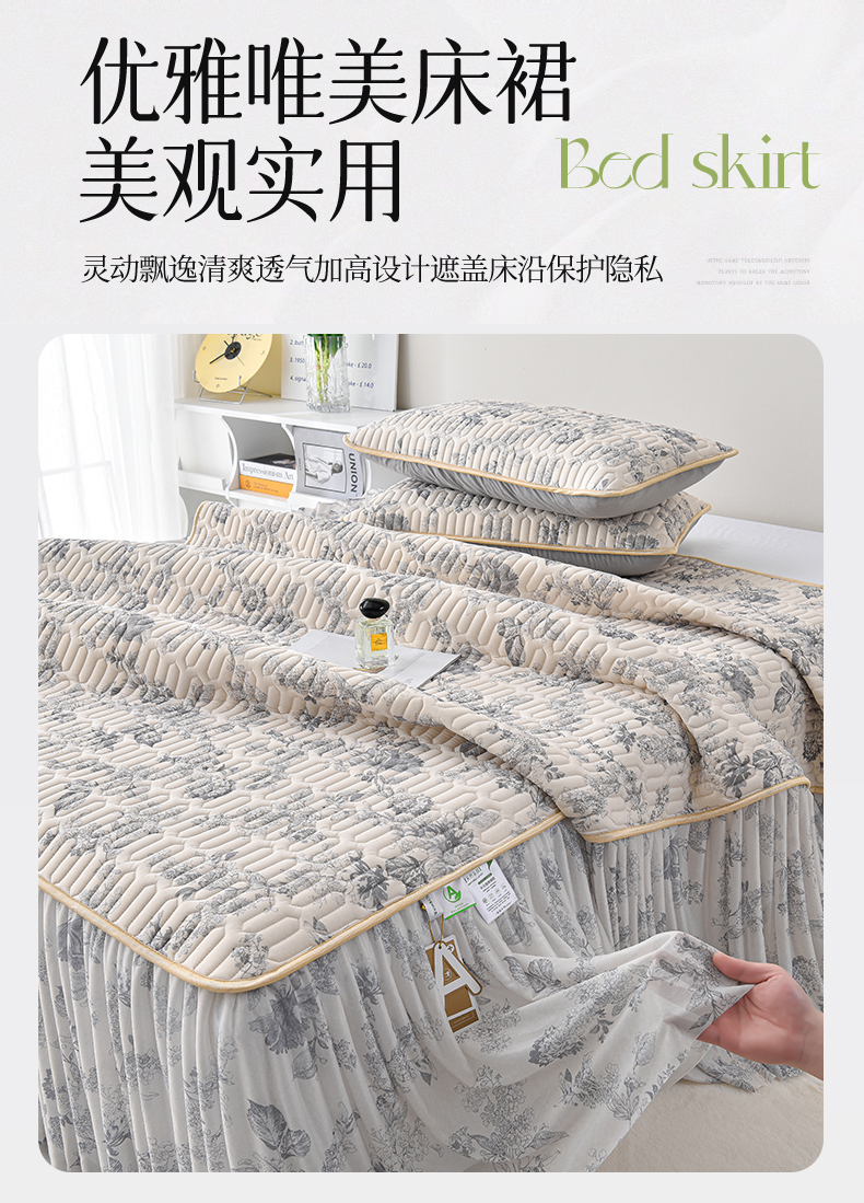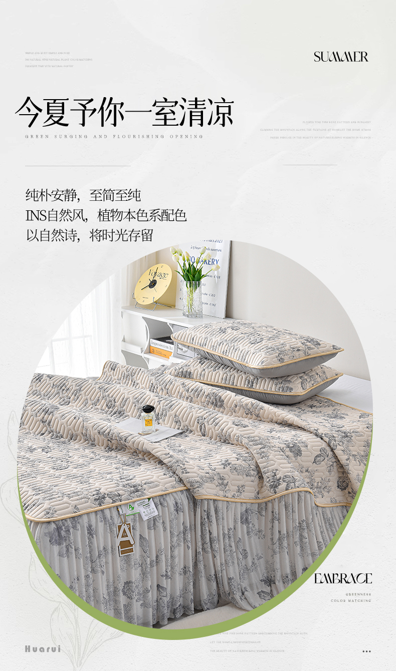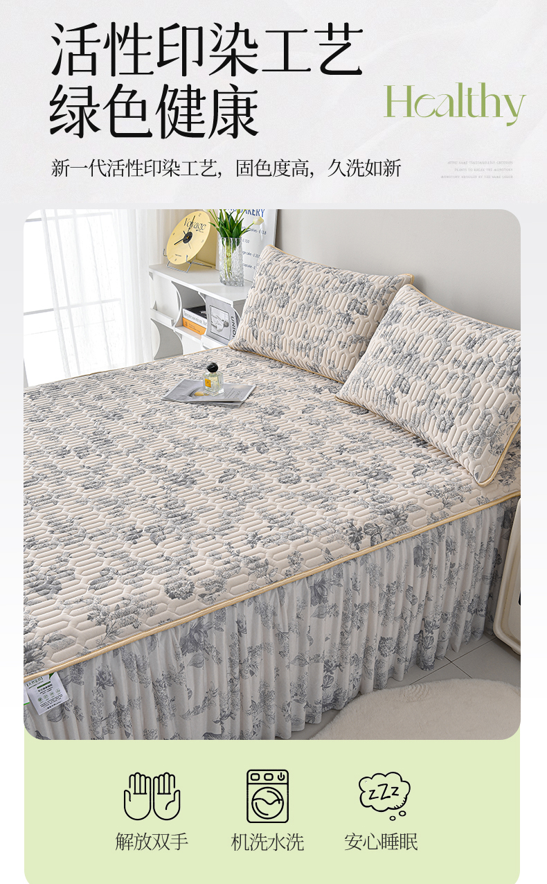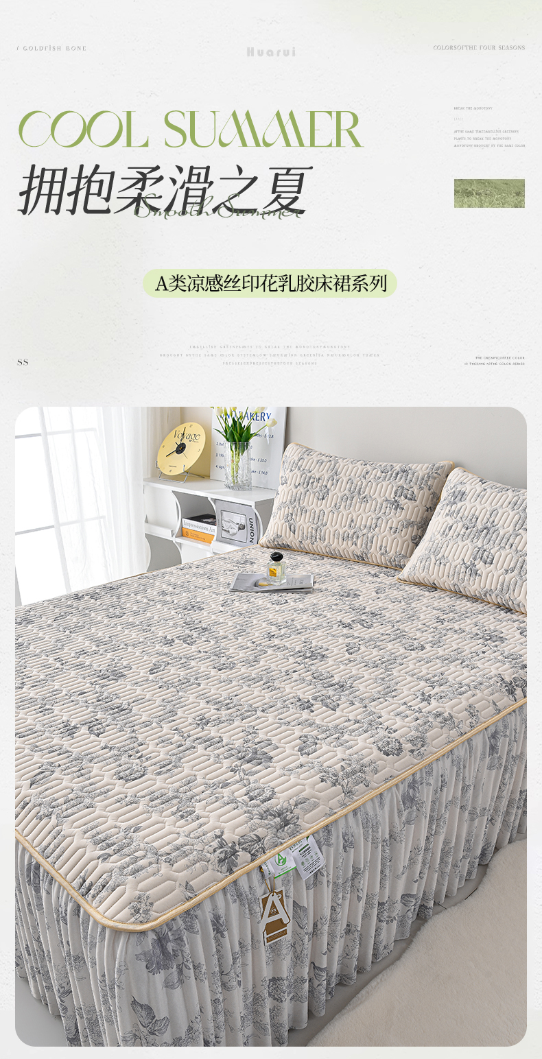 布卢姆床垫2025新款5mm印花乳胶凉席凉感丝席床裙款 枝桠