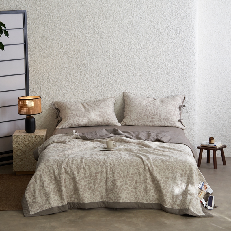 (总)安莱生活 2024新款高端双层纱栀子花色织大提花夏被及夏被四件套