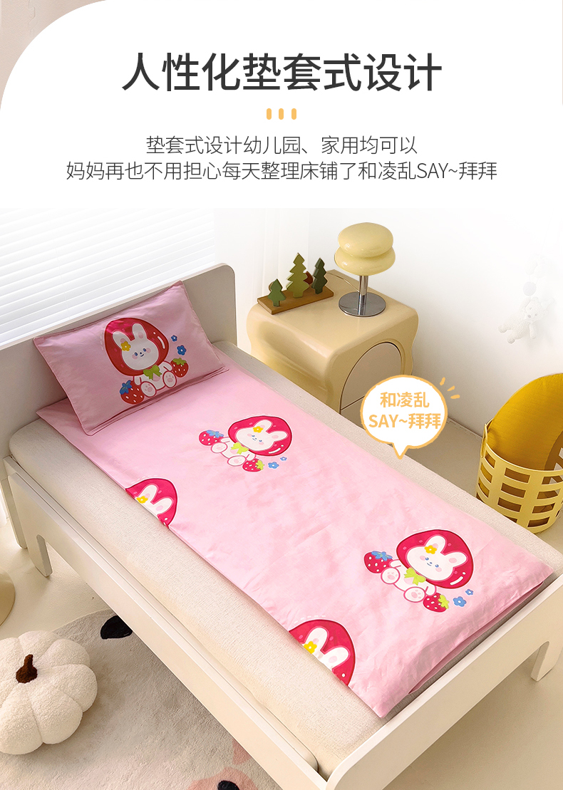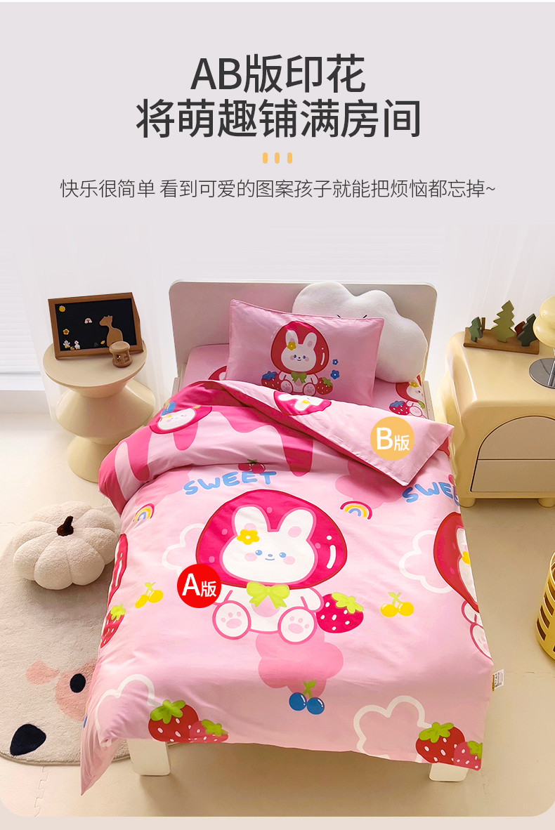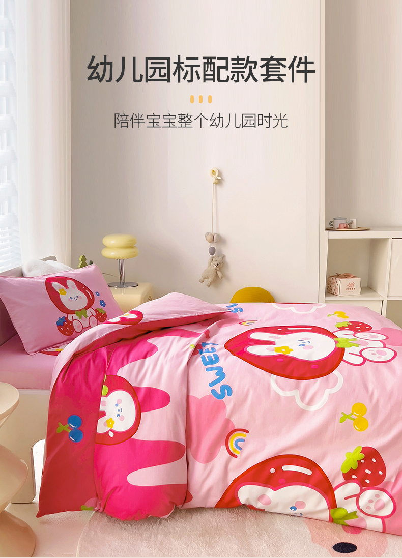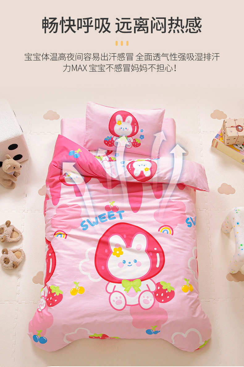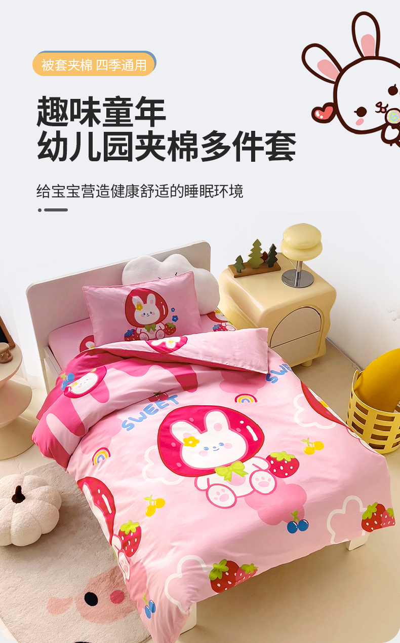 当前位置: 91家纺网 > 商品网购 > 婴童用品 > 婴童床品套件 > 吉咪兔 2024新款幼儿园全棉被子三件套宝宝入园纯棉六件套夹棉被褥午睡被套 草莓小兔