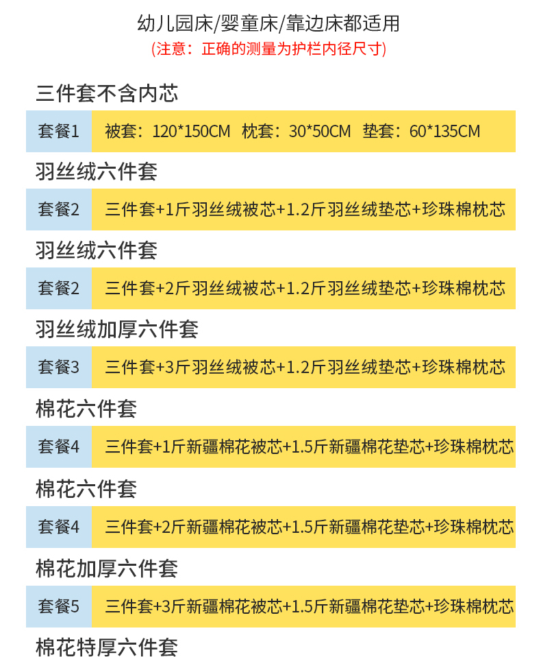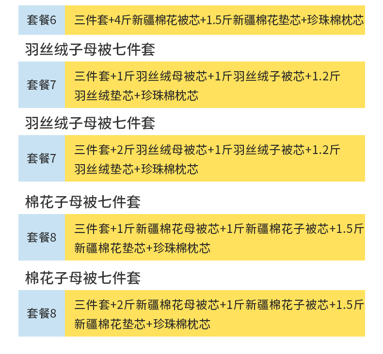 套餐四:3斤丝绵芯六件套 | ¥109.00 |