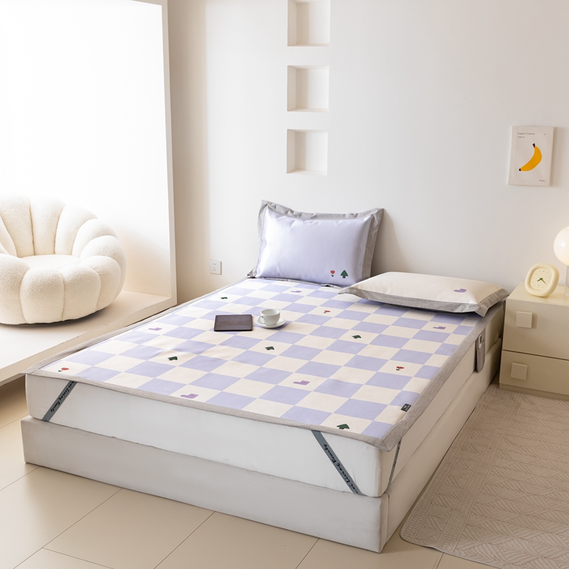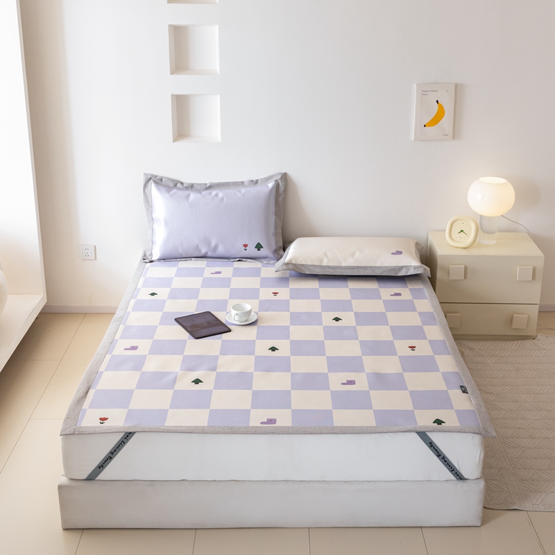 商品名称:本希家居 2024新款花漾清新系列高端可水洗冰丝席 紫白方格平席