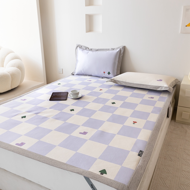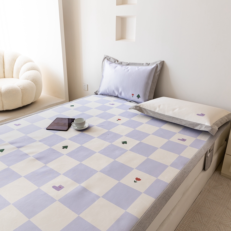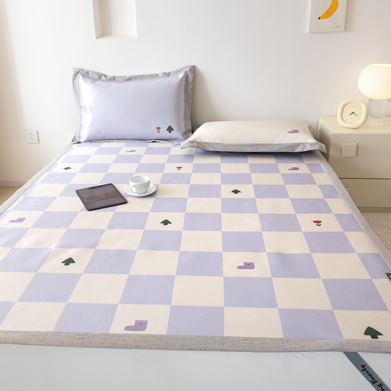 本希家居 2024新款花漾清新系列高端可水洗冰丝席 紫白方格平席