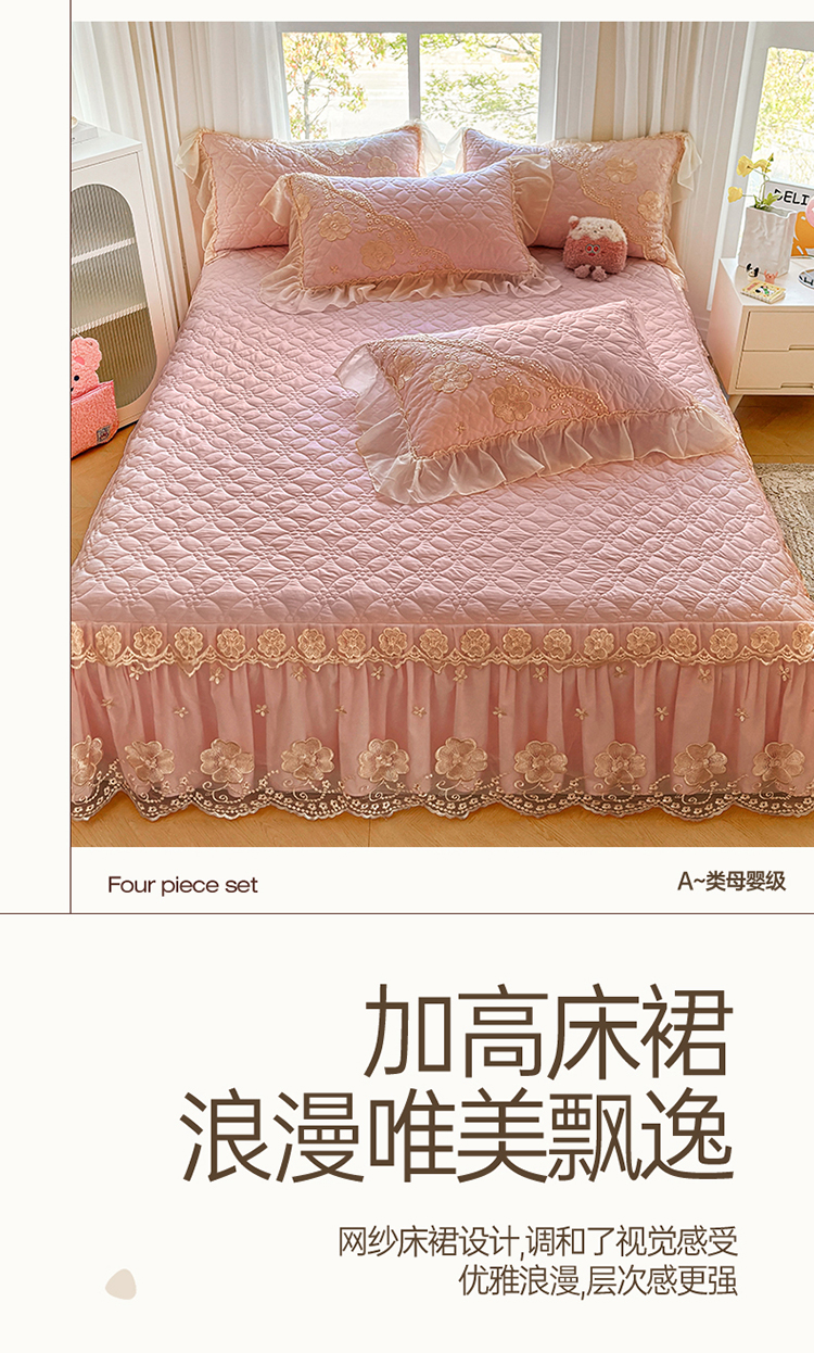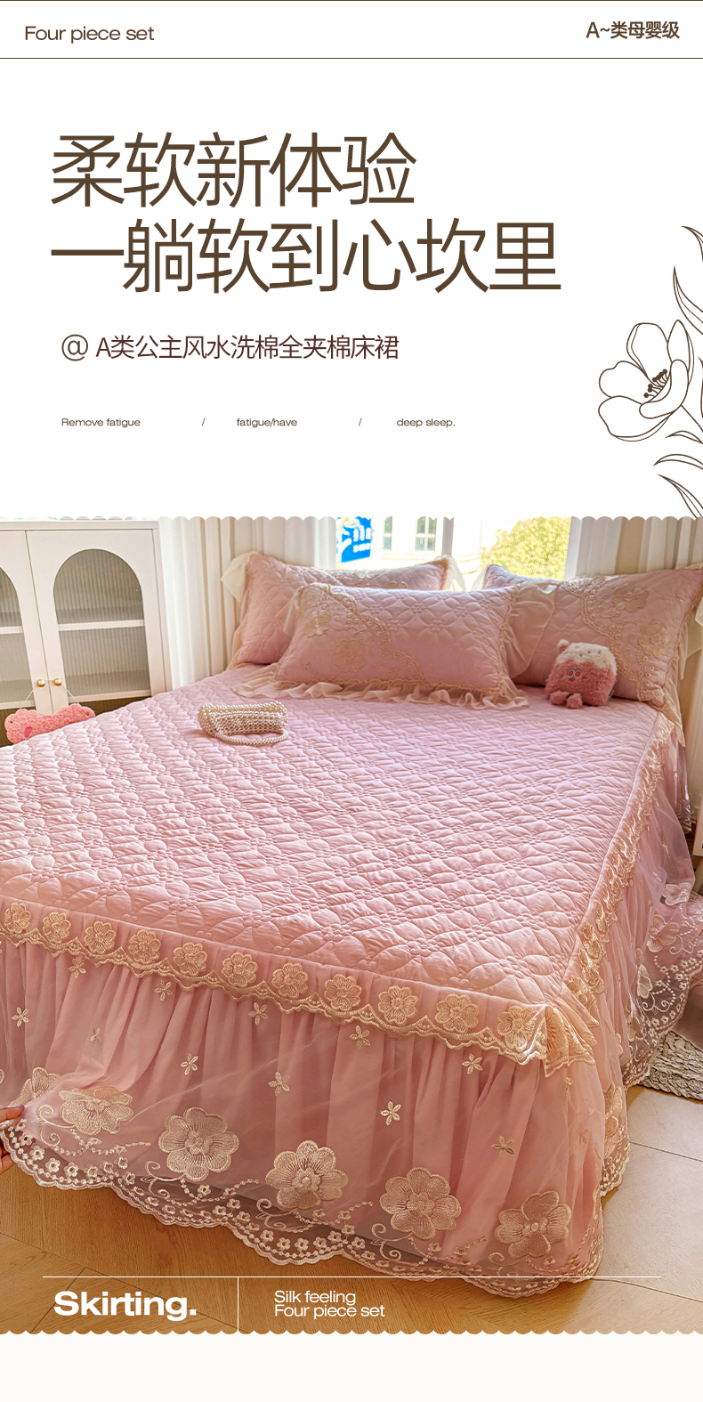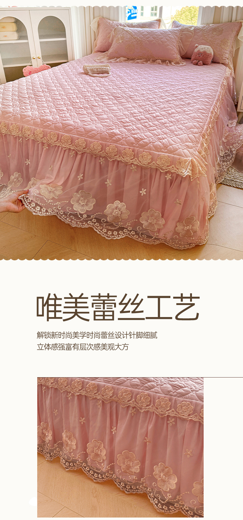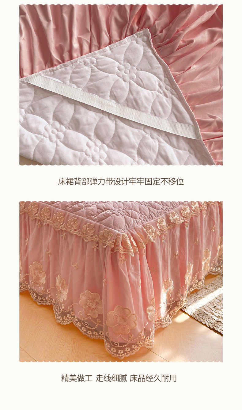 商品名称:罗艺轩 2024新款公主风水洗棉夹棉单床裙-浪漫满屋床 浪漫满屋-豆沙