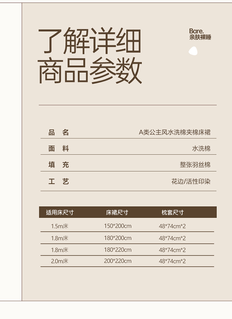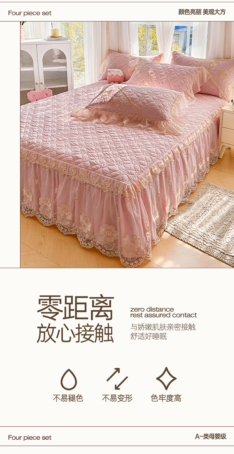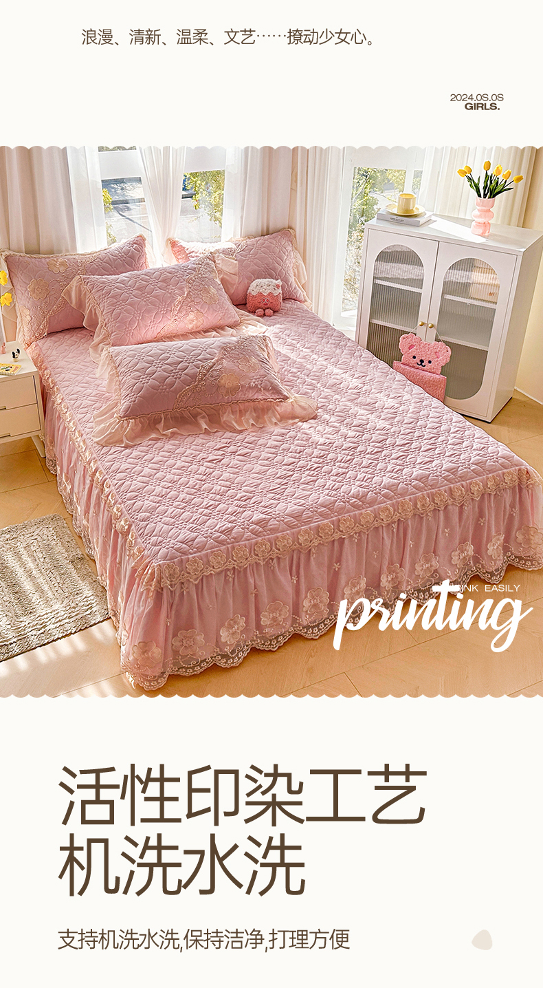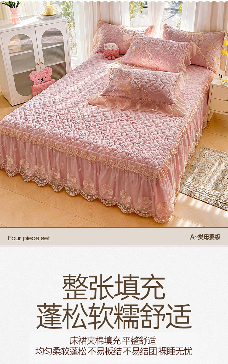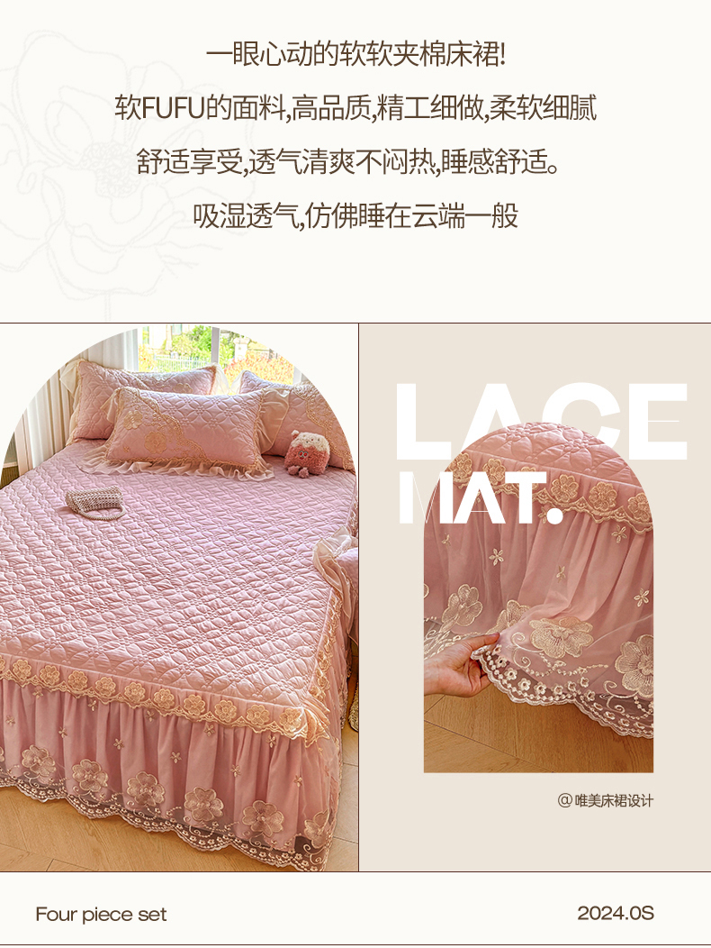 商品名称:罗艺轩 2024新款公主风水洗棉夹棉单床裙-浪漫满屋床 浪漫满屋-豆沙