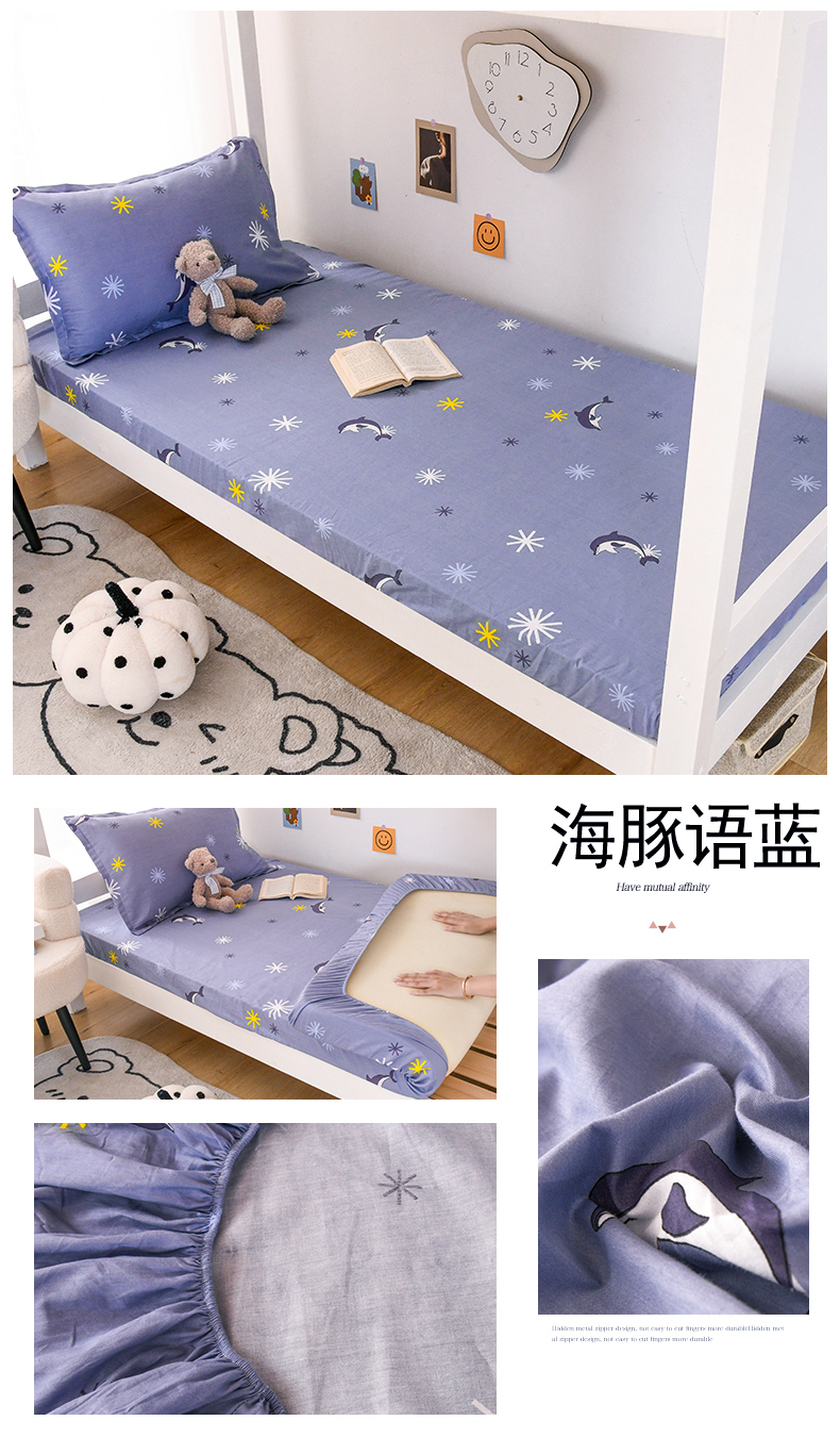 • 91家纺网 家纺一手货源 找家纺 茗婷家纺 2025新款13372全棉纯棉宿舍学生床笠 海豚语蓝