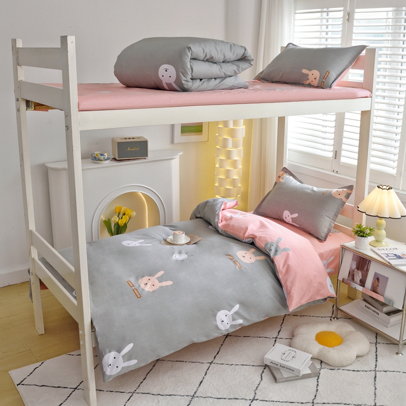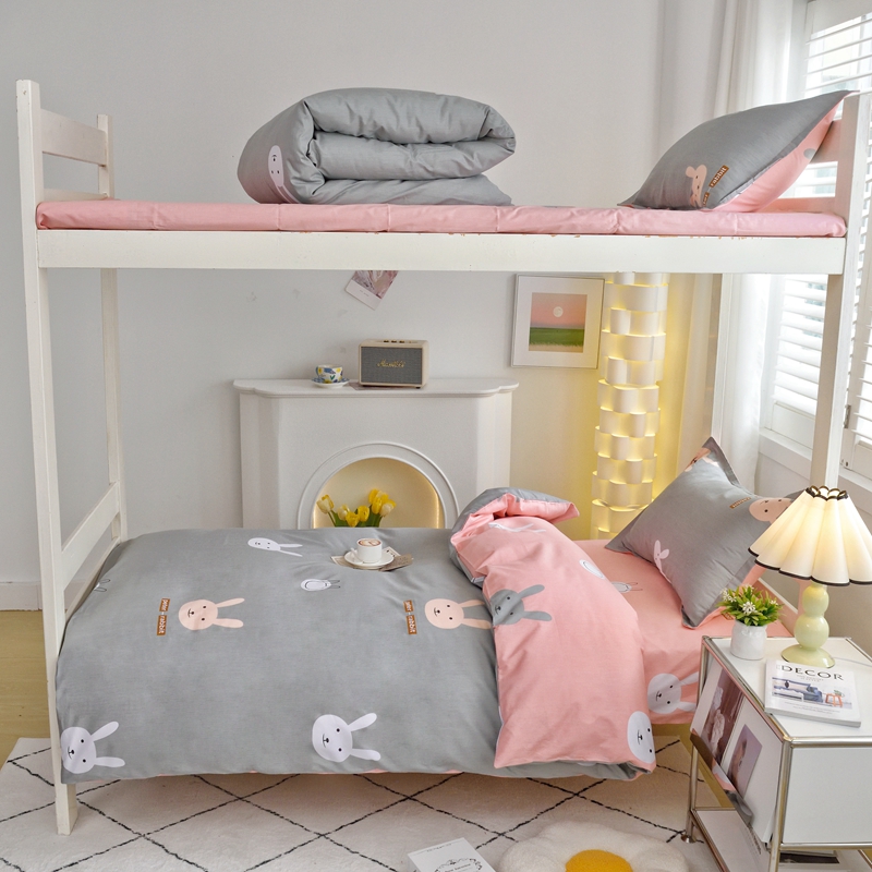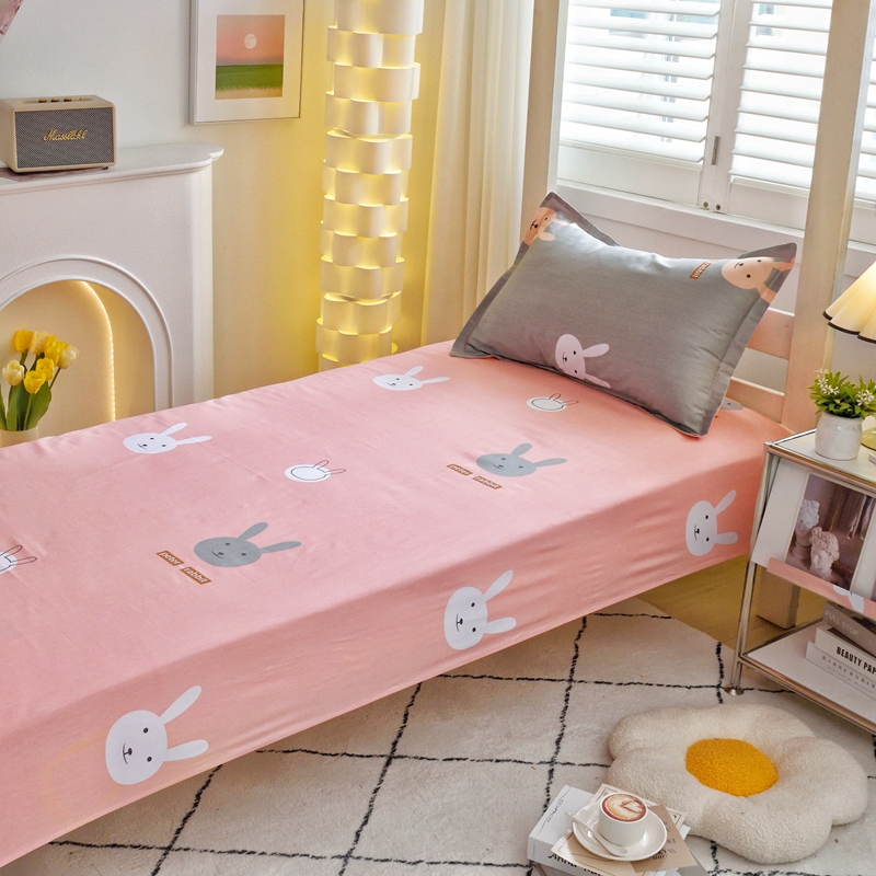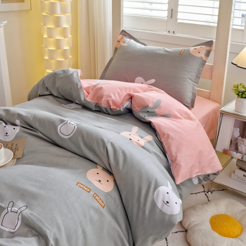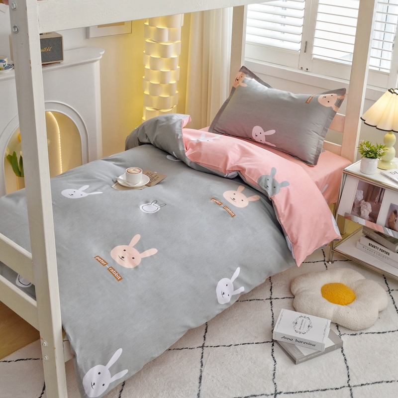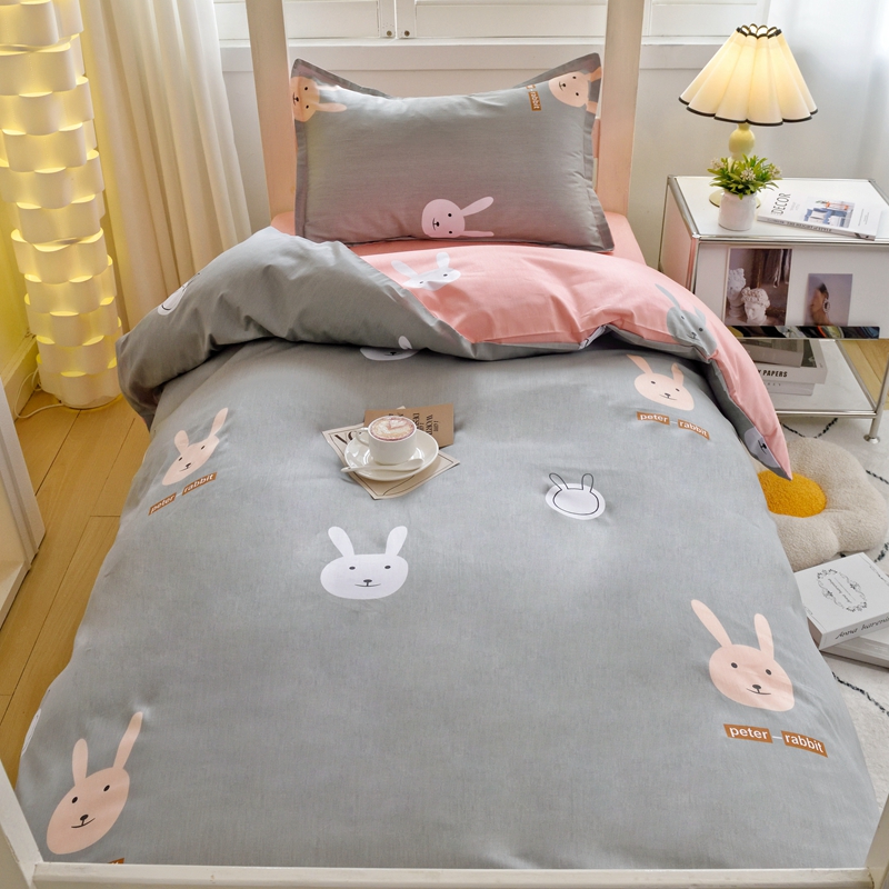 茗婷家纺 2025新款13372纯棉学生宿舍床笠三件套 彼得兔灰