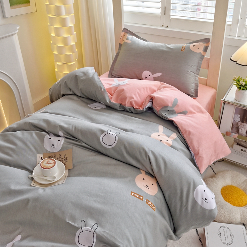 商品名称:茗婷家纺 2025新款13372纯棉学生宿舍床笠三件套 彼得兔灰