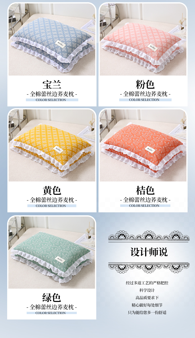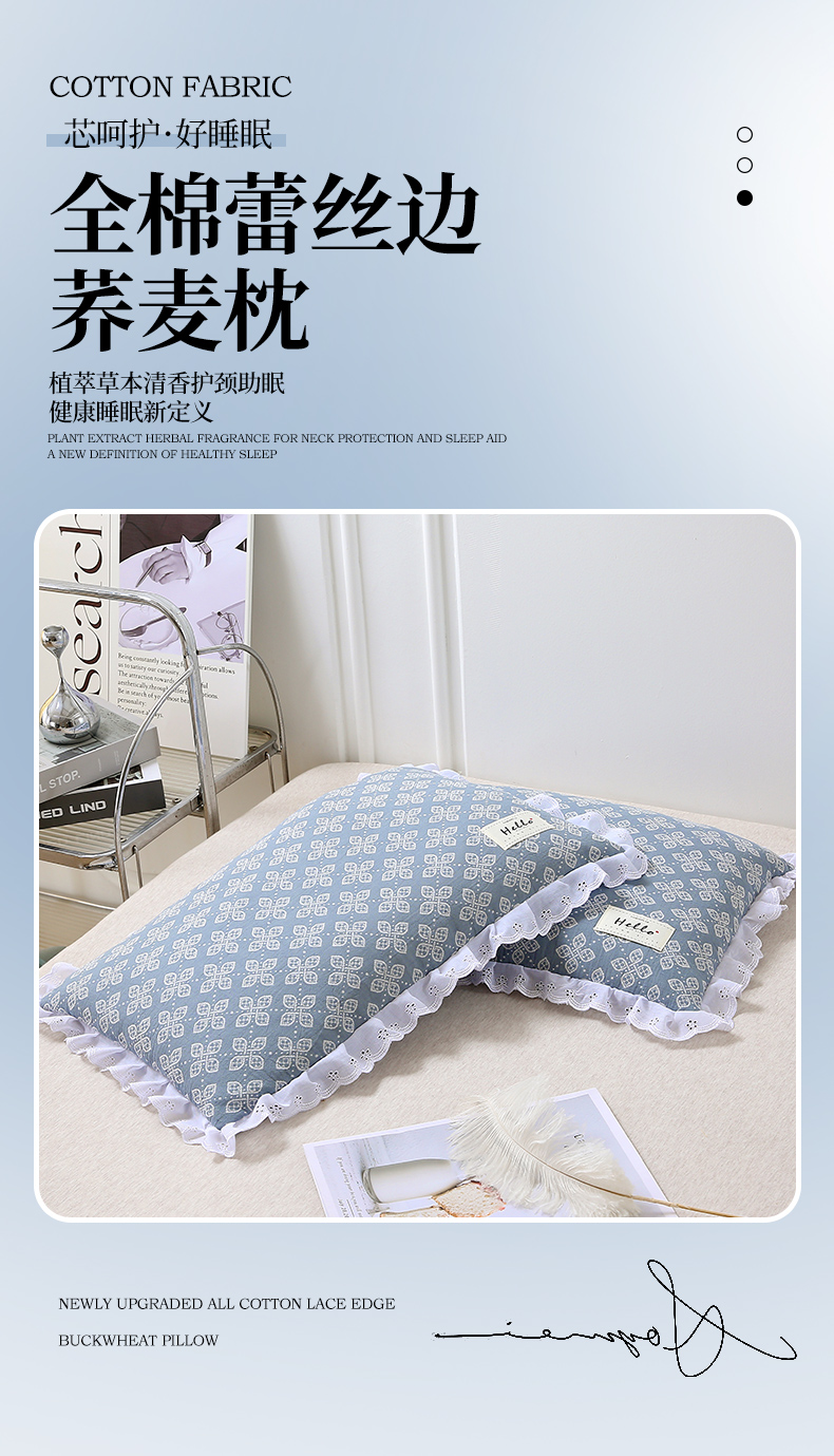 全棉蕾丝边荞麦枕-宝兰