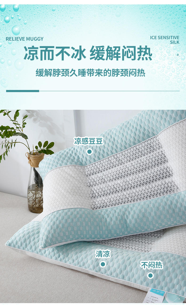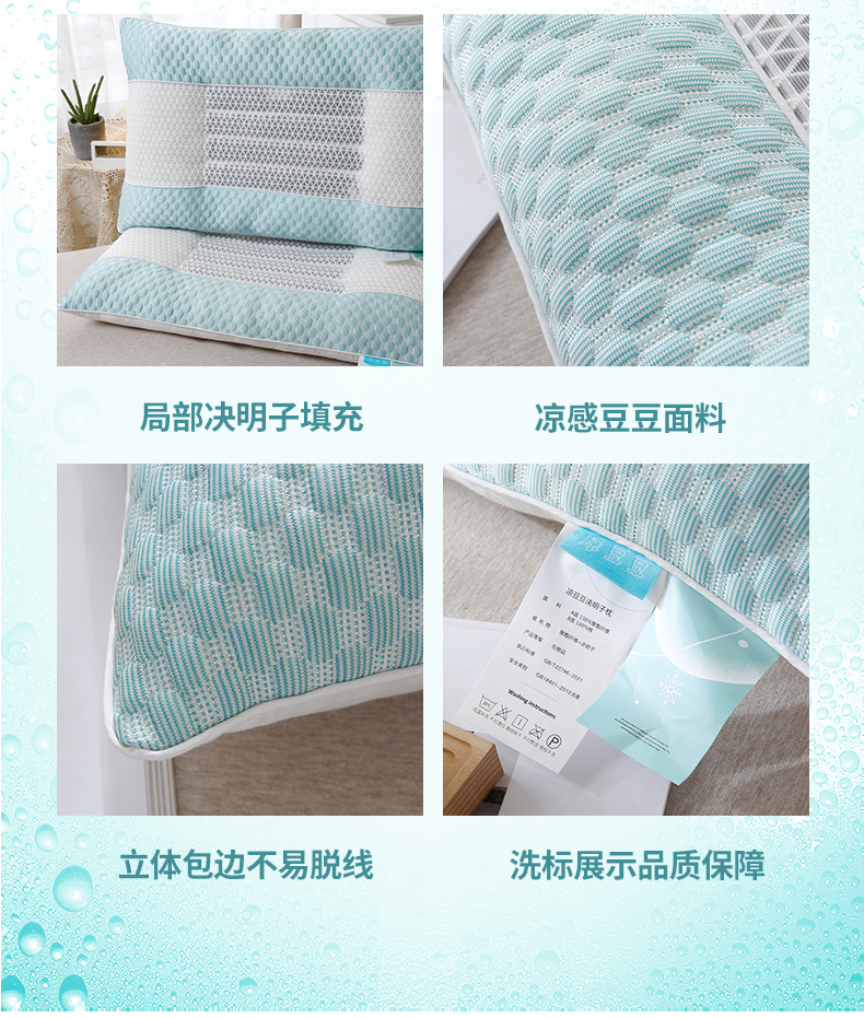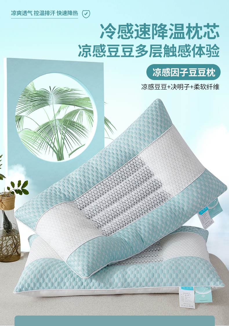 商品名称:(总)梦叶草 2024新款凉感丝凉豆豆决明子枕芯A版凉感丝B版全棉决明子护颈枕头