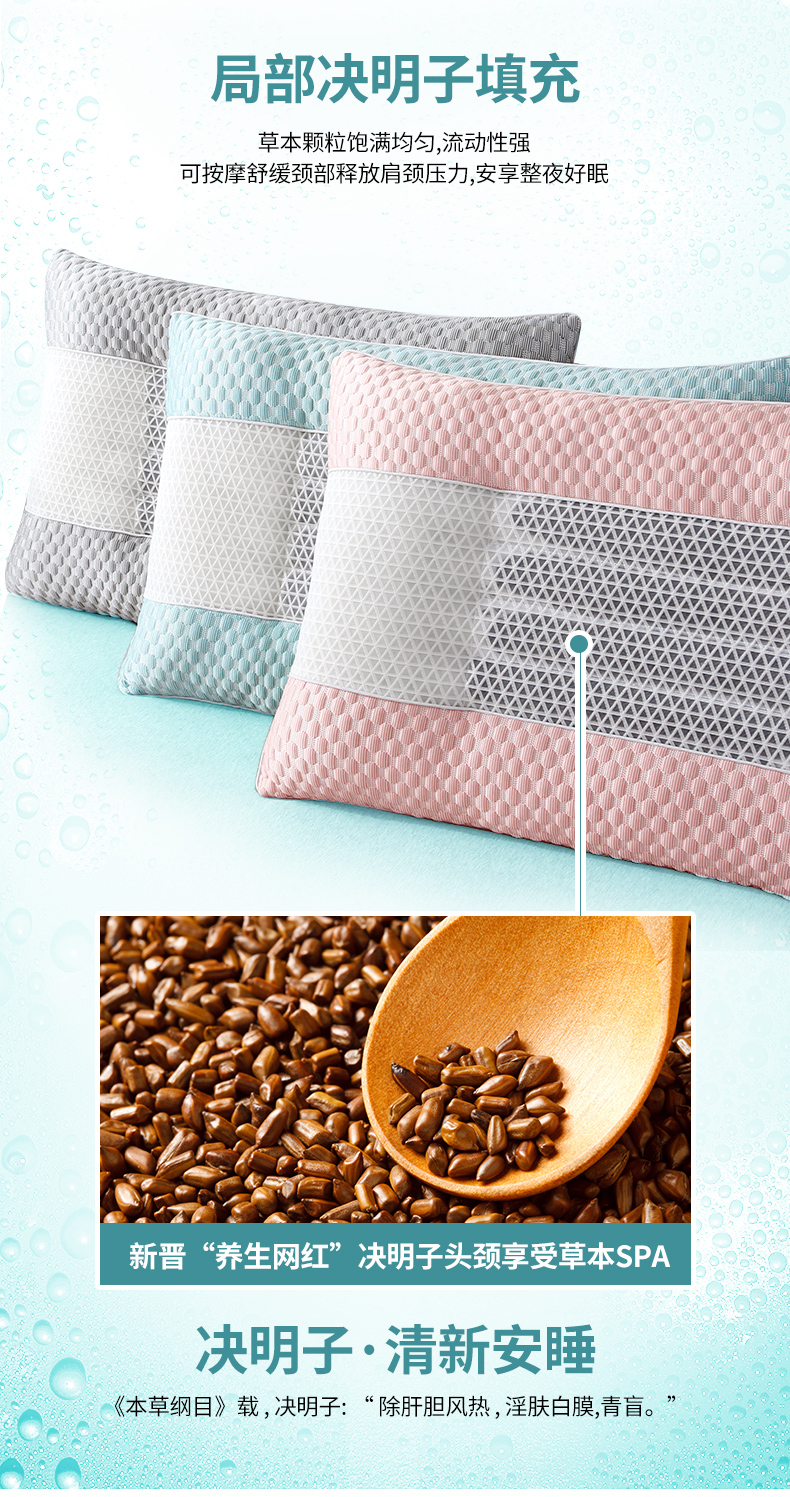 (总)梦叶草 2024新款凉感丝凉豆豆决明子枕芯A版凉感丝B版全棉决明子护颈枕头
