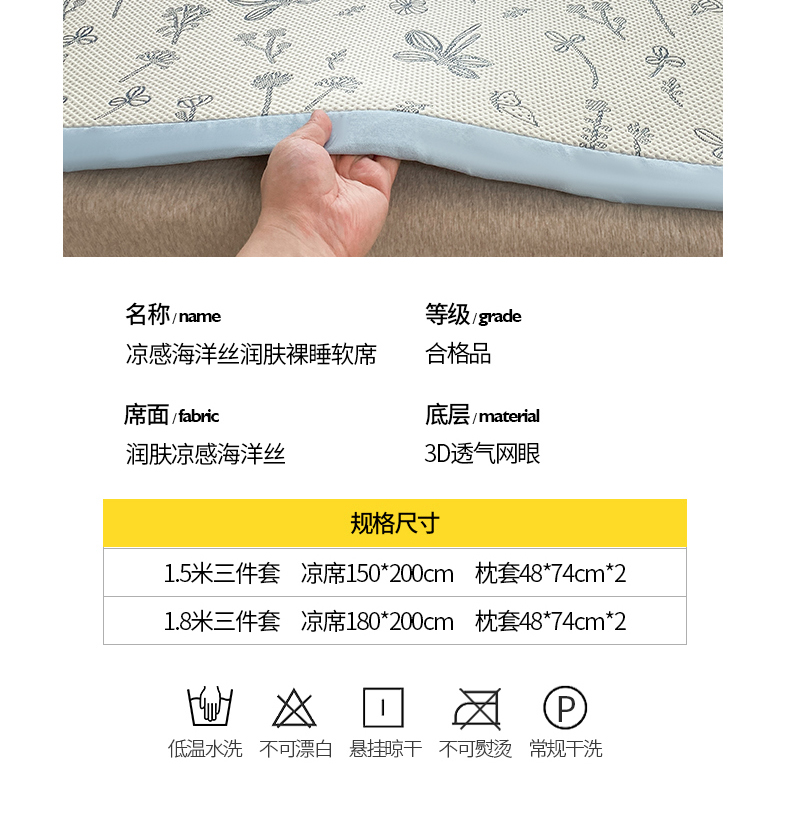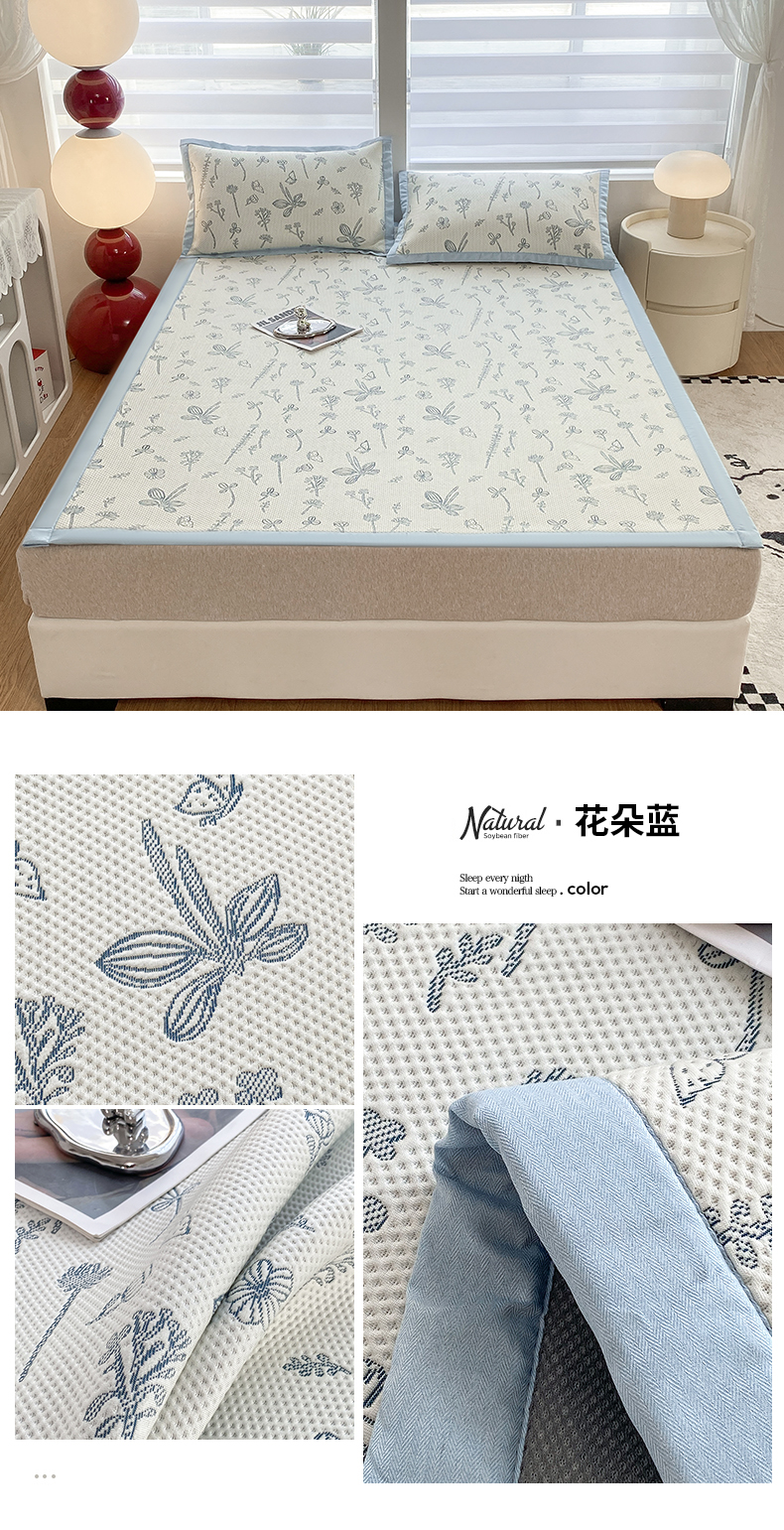商品名称:典冠 2024新款A类乙伦凉感PE凉席海洋丝裸睡软席三件套 花朵蓝