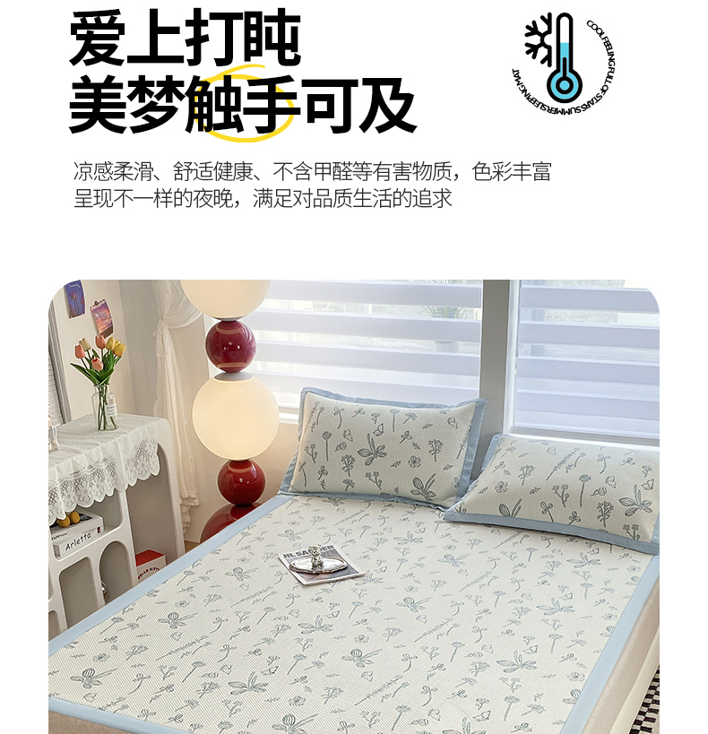 (总)典冠 2025新款PE乙纶冰豆豆凉席,格子纹,爱心熊,花朵蓝,花朵绿,开心灰,猫咪灰,煤球灰,煤球蓝,咩咩蓝,浅夏绿,浅夏玉,熊猫灰