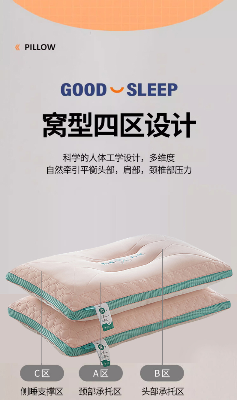 (总)梵希良品家纺 2025新款针织棉7A护颈枕头枕芯,反c深睡牵引分区枕-绿色,反c深睡牵引分区枕- 粉色