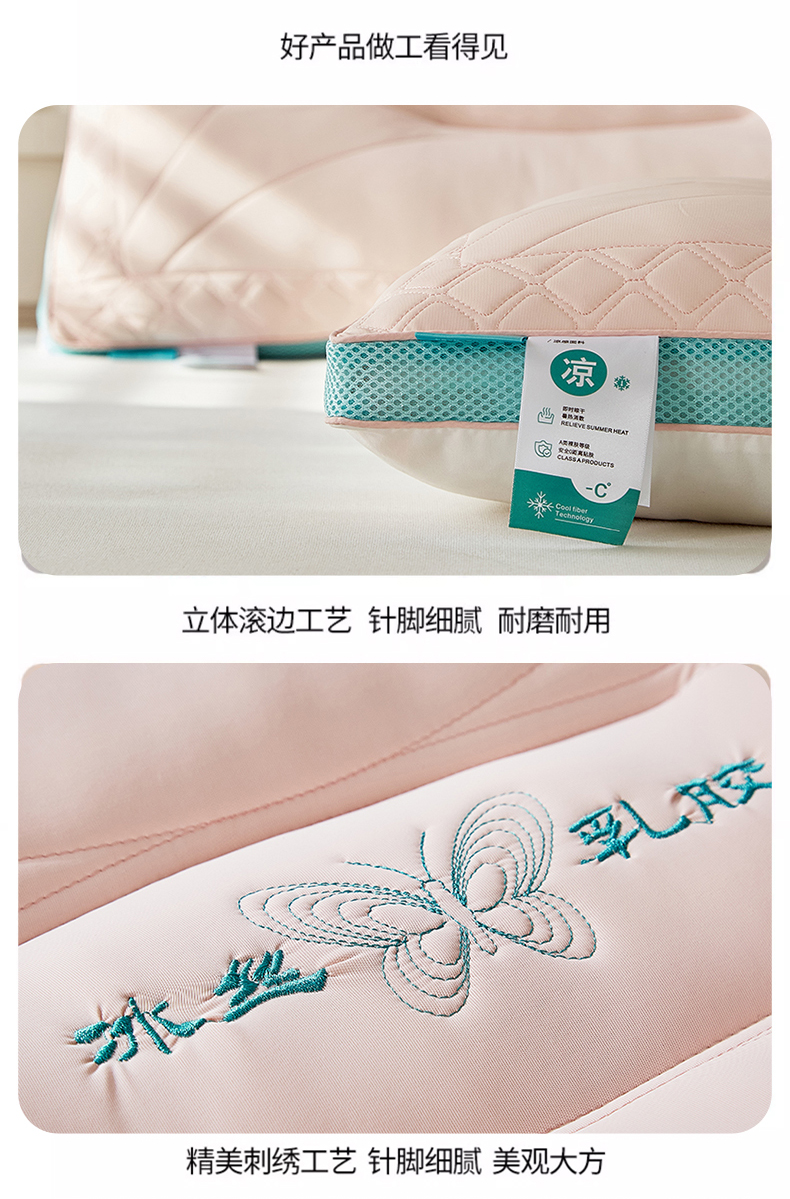 商品名称:梵希良品家纺 2024新款冰丝乳胶枕-蝴蝶款 冰丝乳胶蝴蝶款-粉色 中枕48x74cm/只