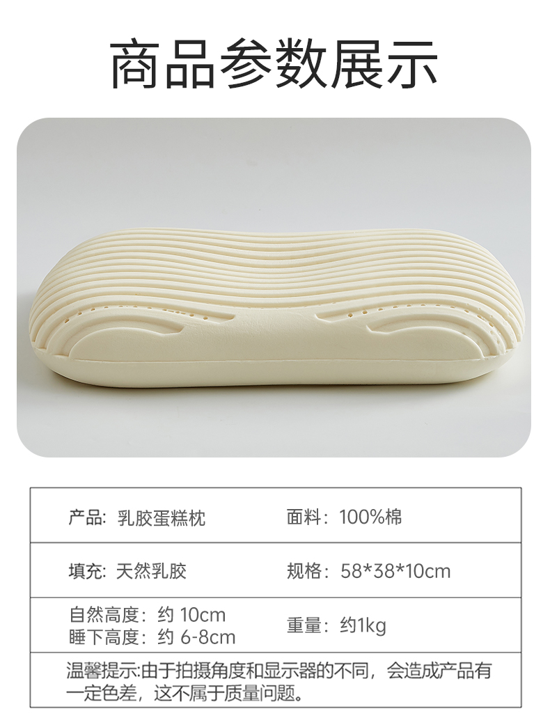 商品名称:(总)沃兰国际 2024新款天然乳胶蛋糕枕枕头枕芯50*38*10cm