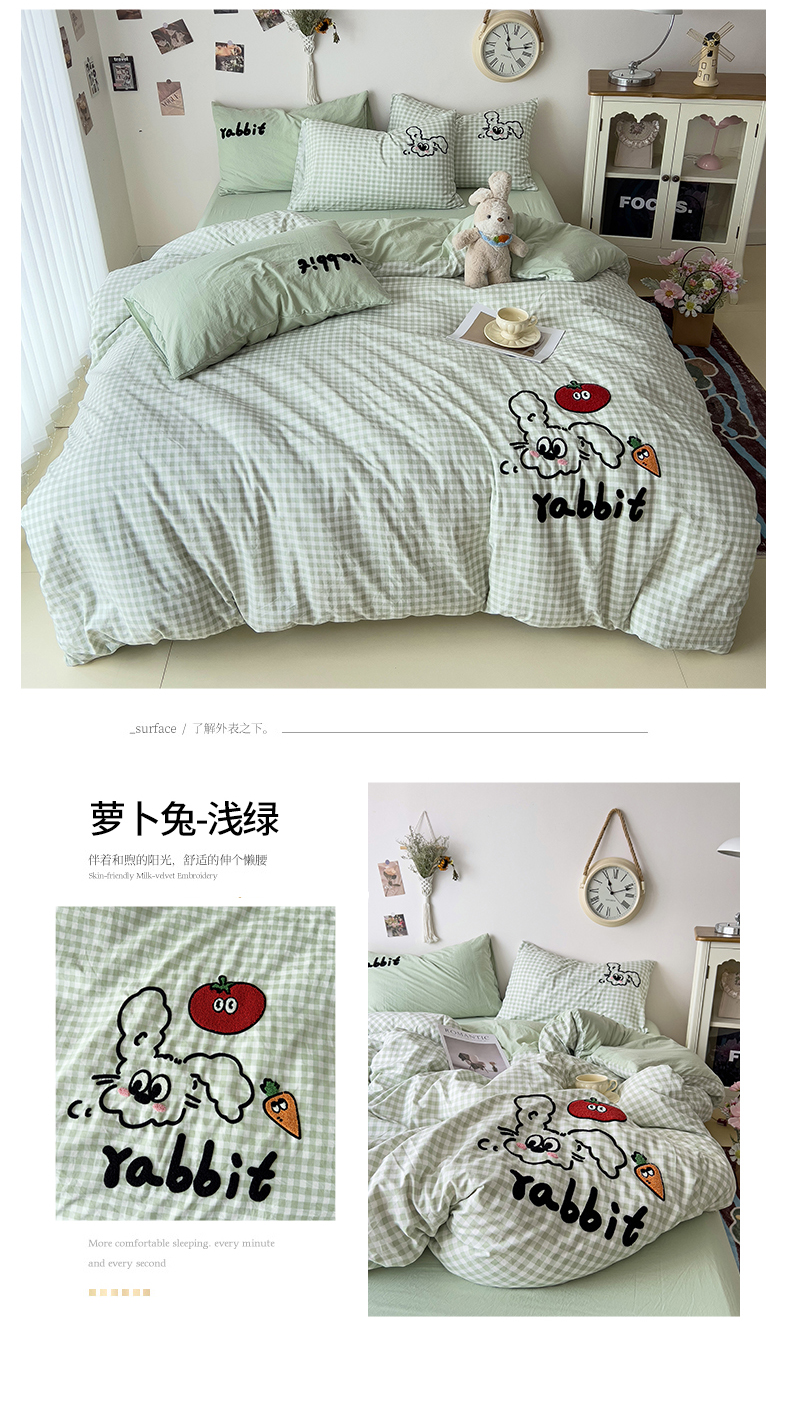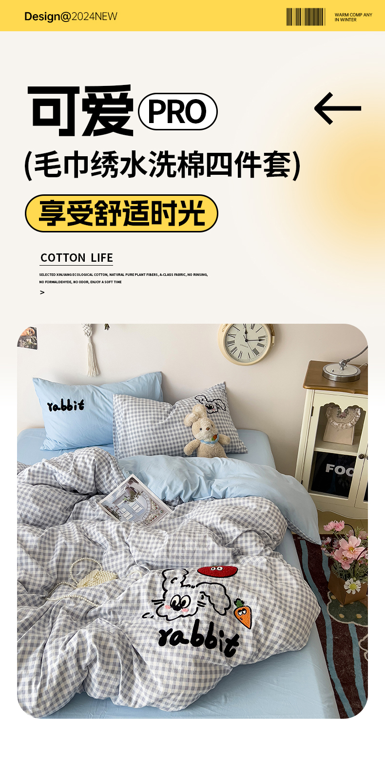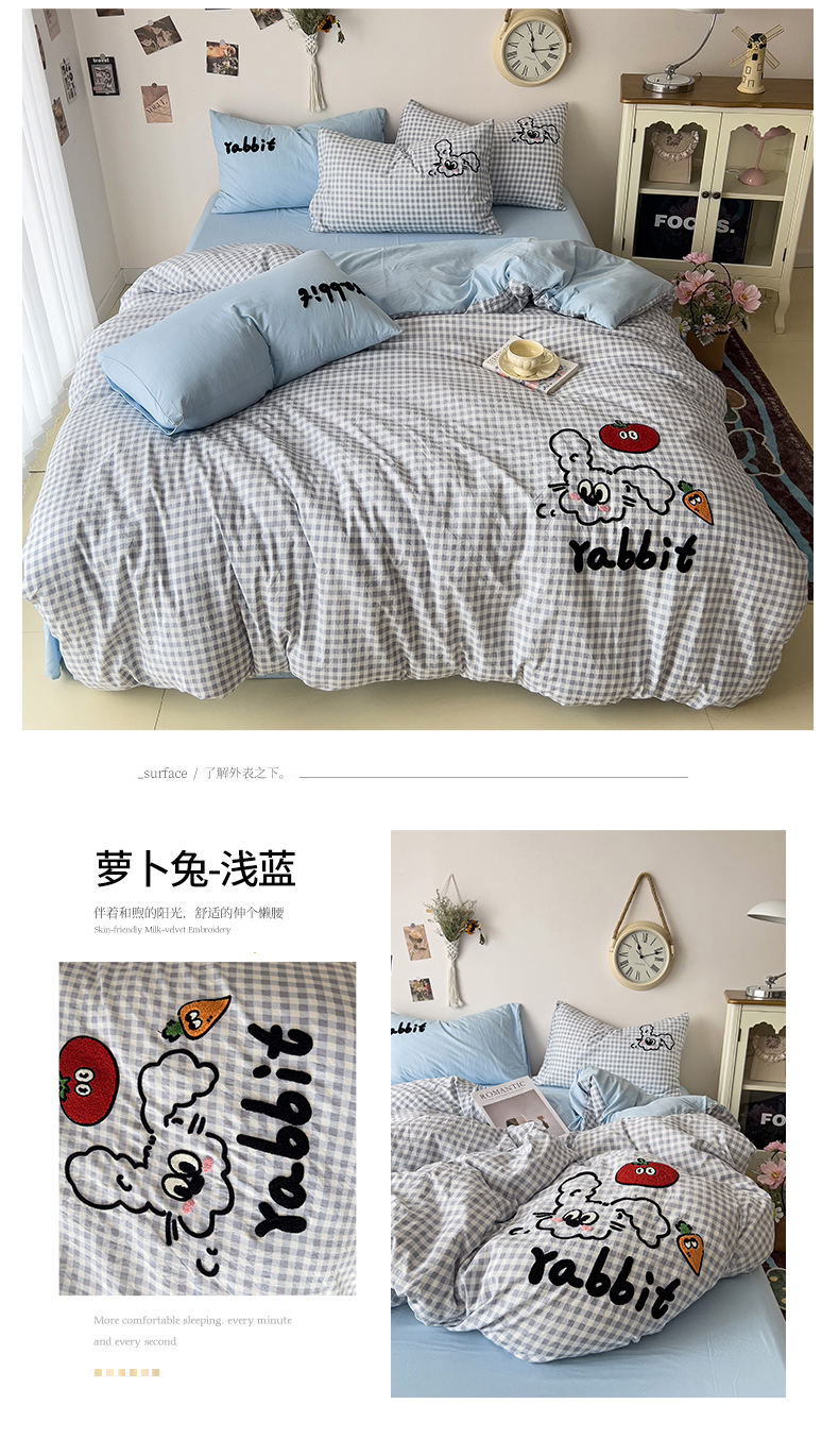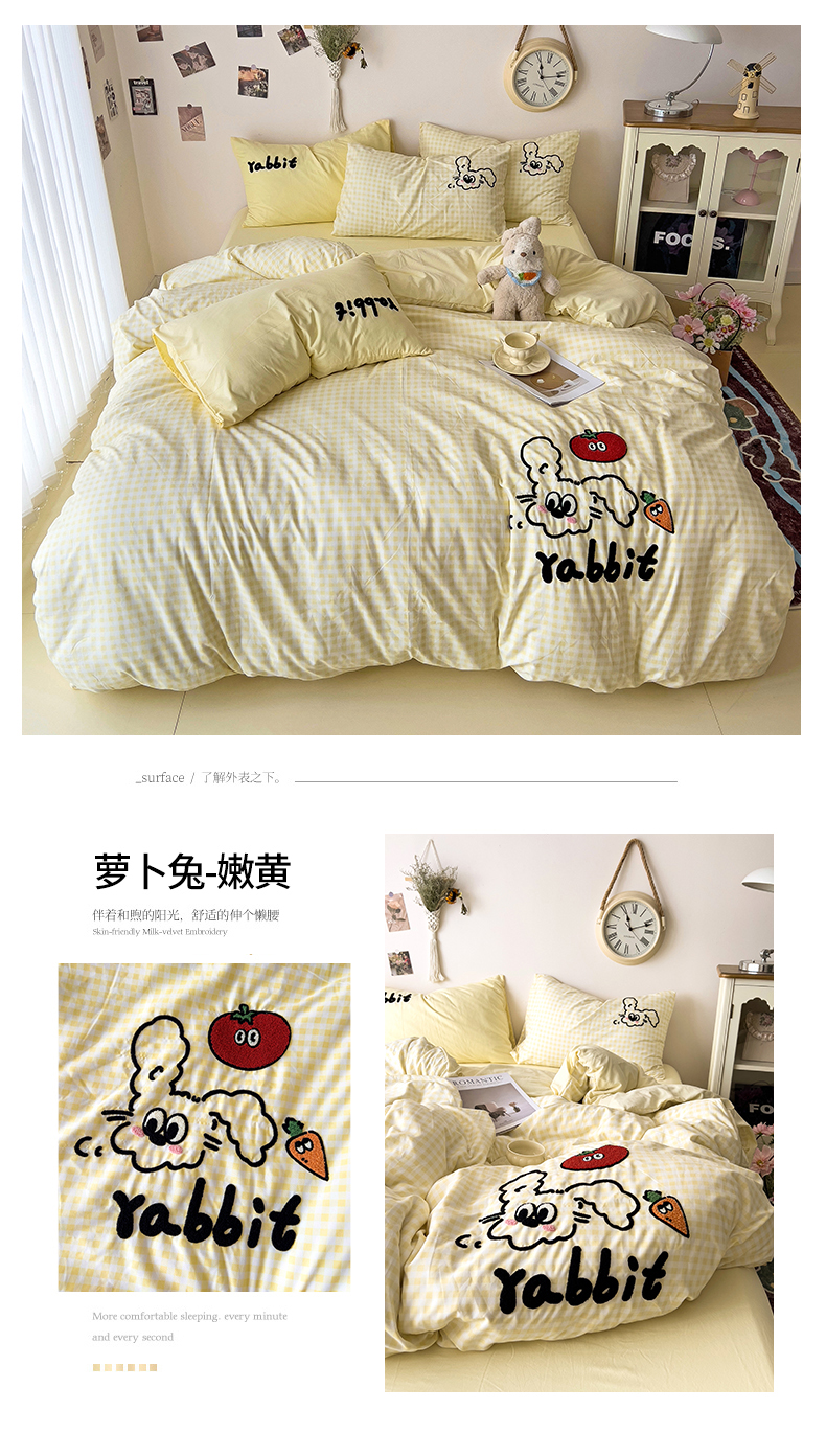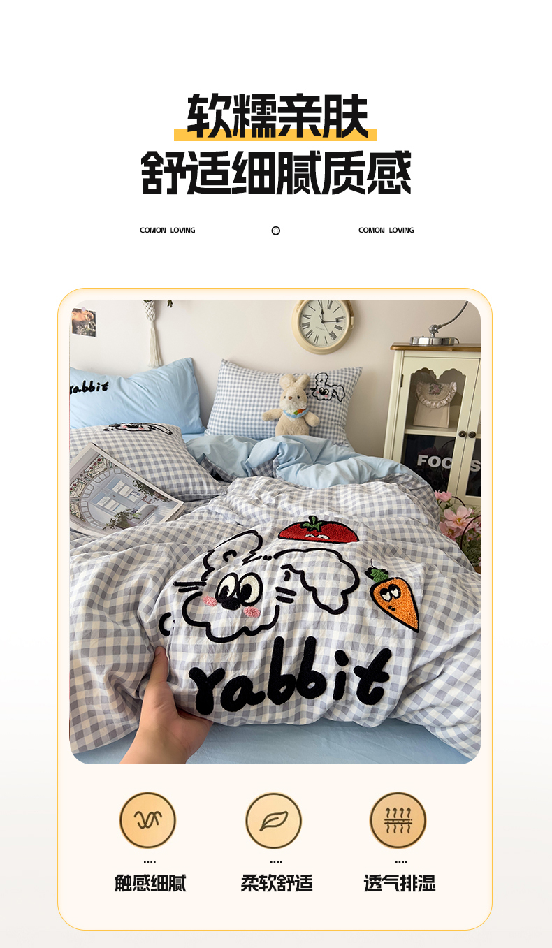 当前位置: 91家纺网 > 商品网购 > 床品套件 > 四件套 > 水洗棉四件套 > (总)尤米 2024新款可爱萝卜兔水洗棉毛巾绣四件套