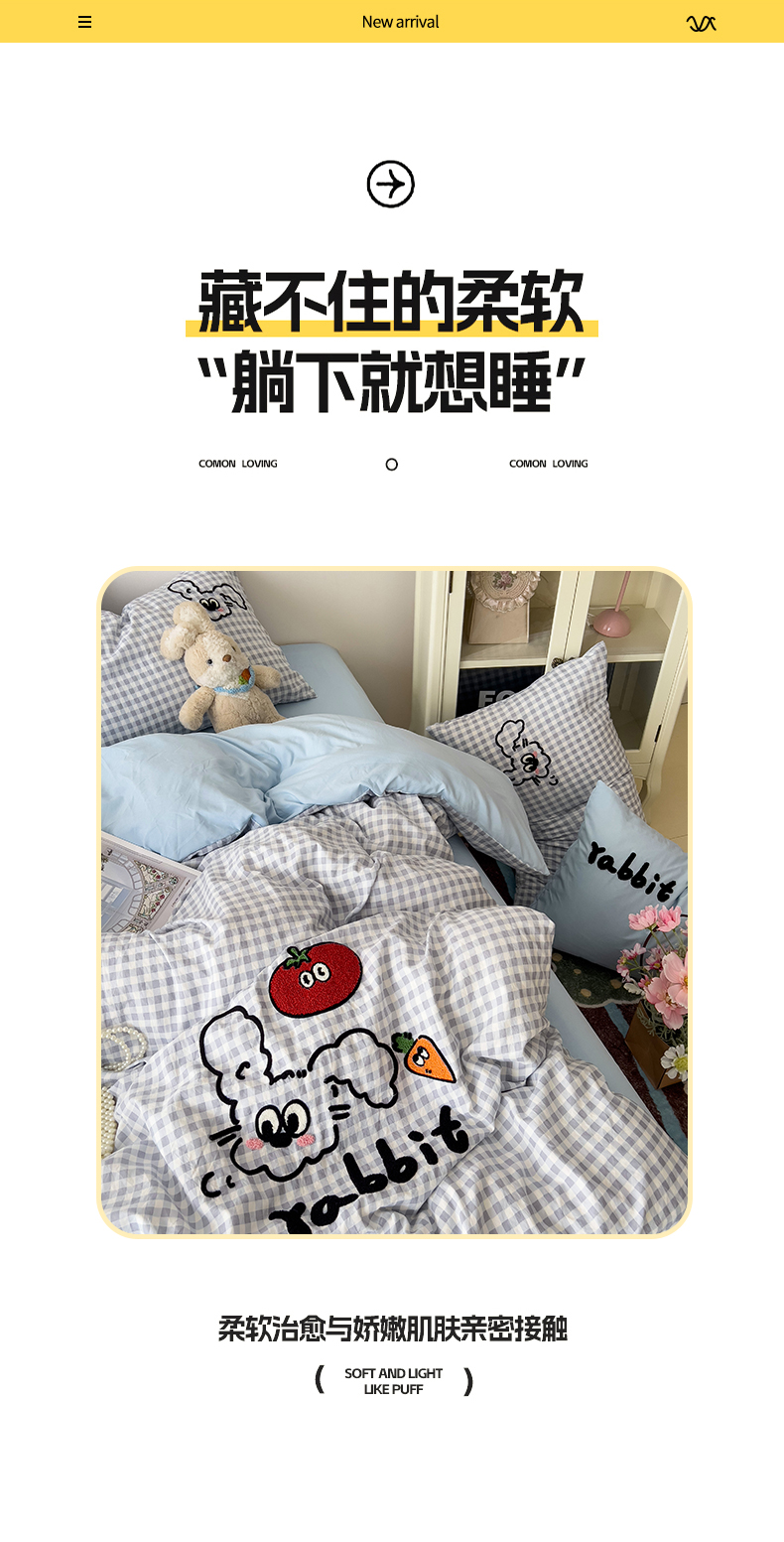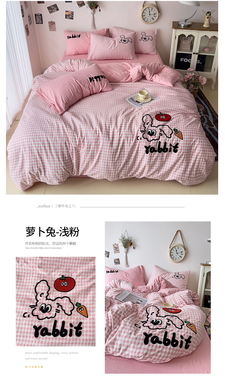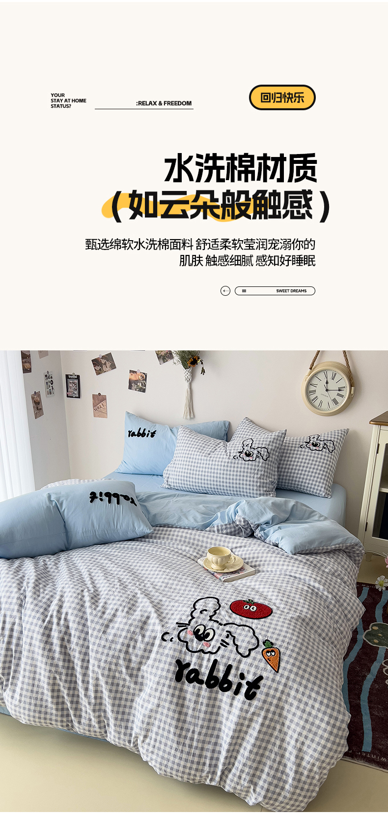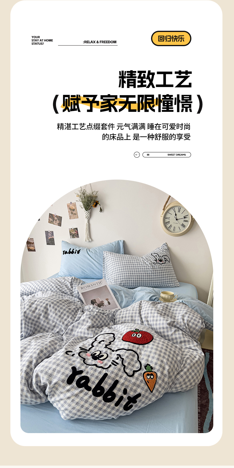 当前位置: 91家纺网 > 商品网购 > 床品套件 > 四件套 > 水洗棉四件套 > (总)尤米 2024新款可爱萝卜兔水洗棉毛巾绣四件套