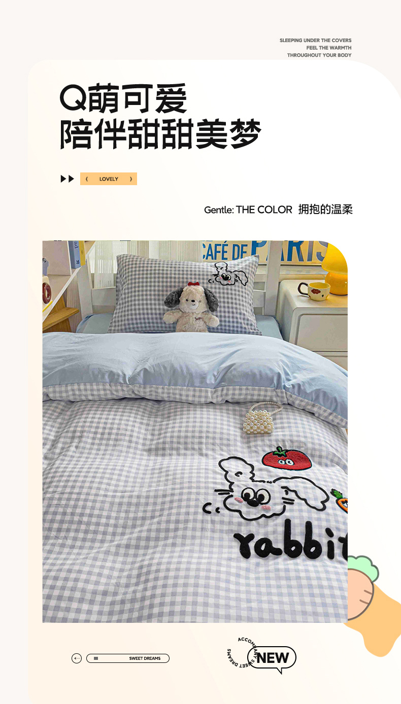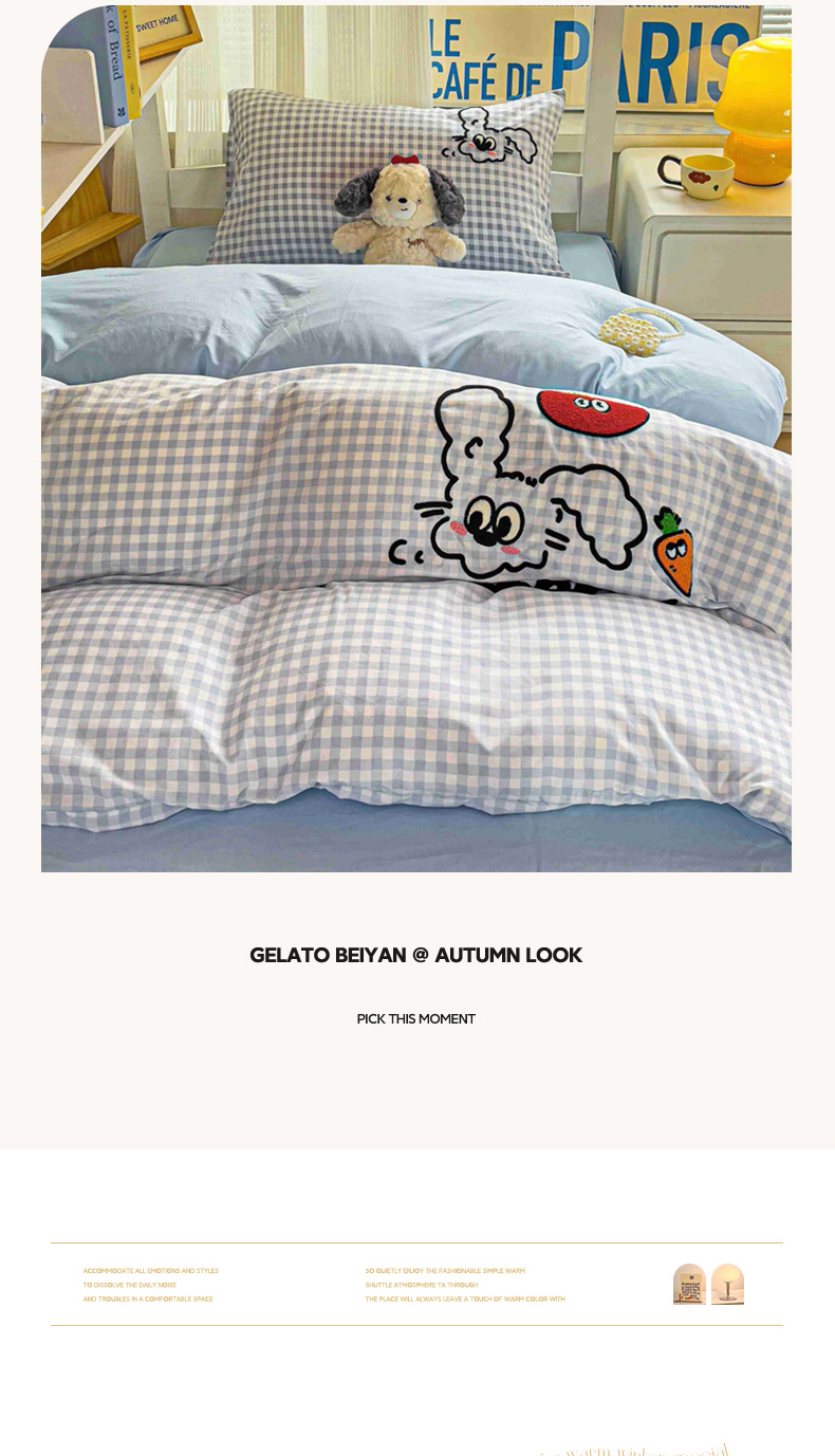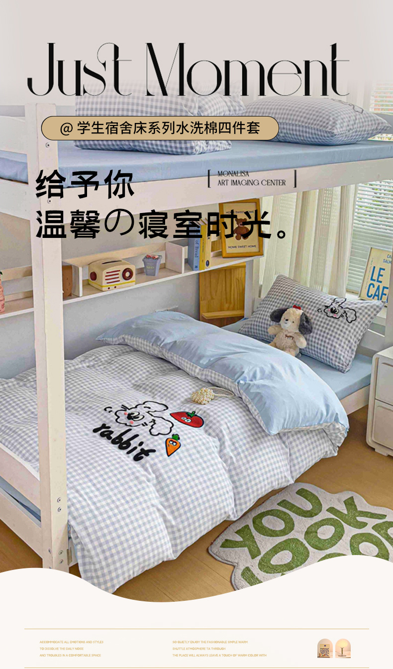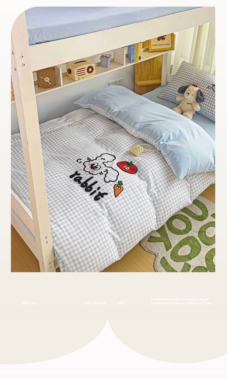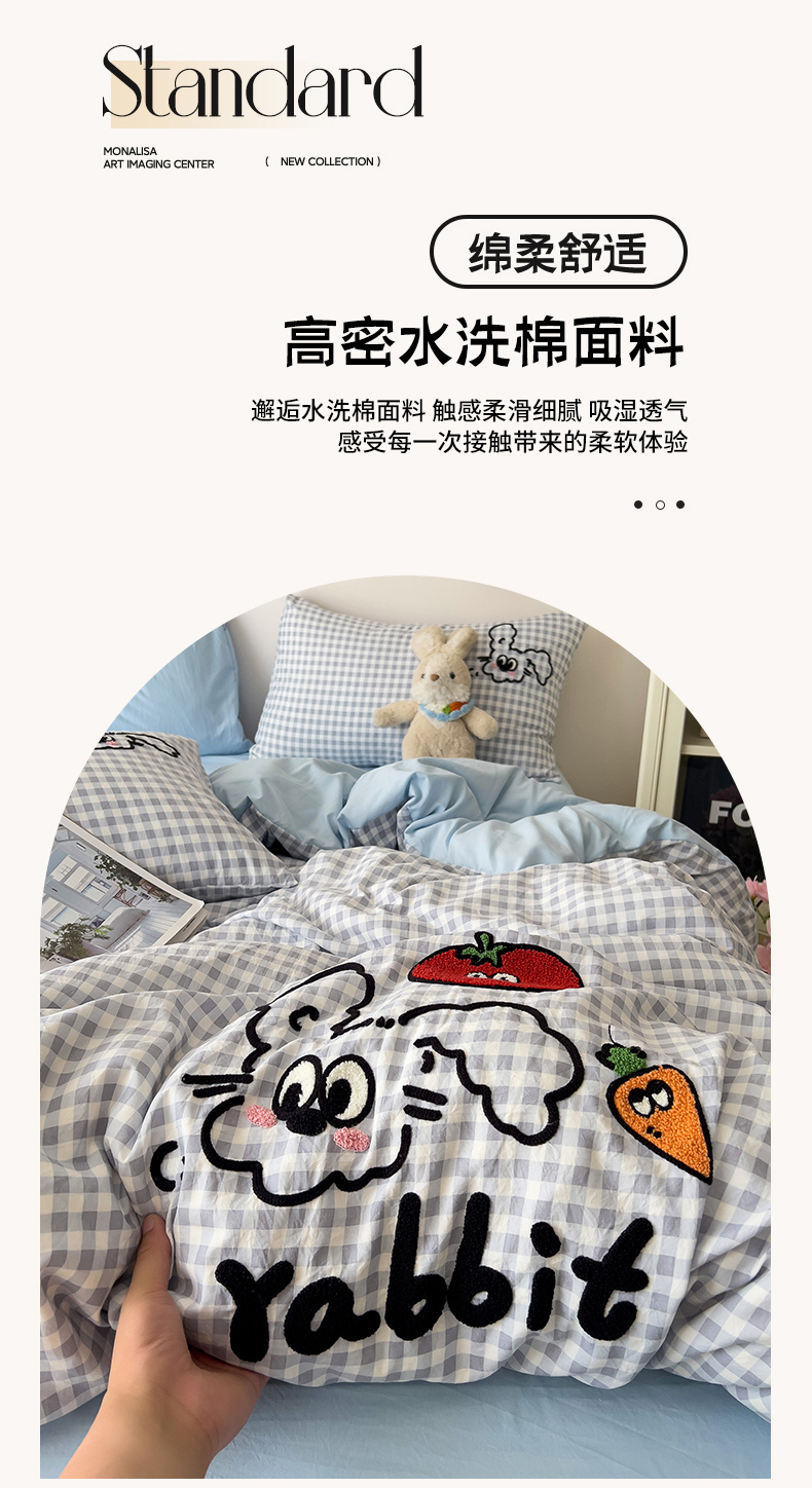 当前位置: 91家纺网 > 商品网购 > 床品套件 > 四件套 > 水洗棉四件套 > 尤米 2024新款可爱萝卜兔水洗棉毛巾绣四件套 学生床 萝卜兔-浅蓝