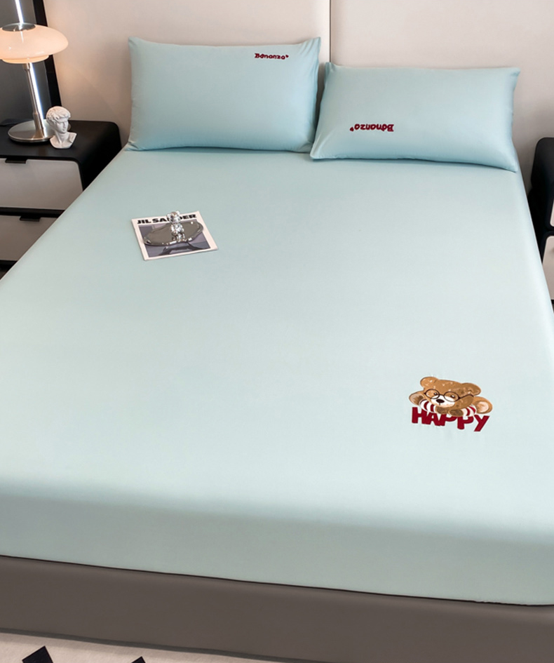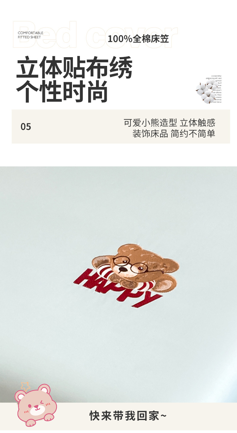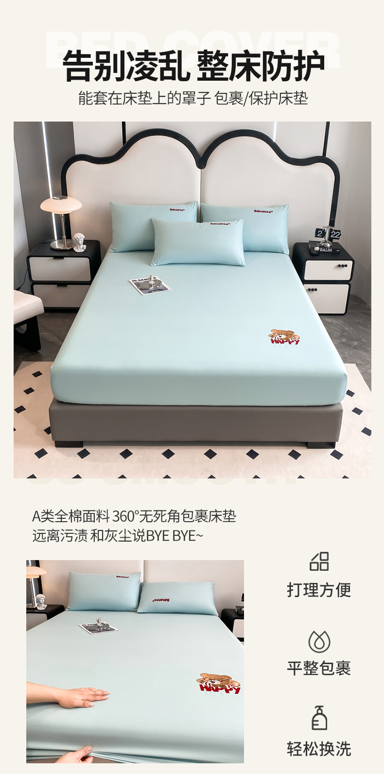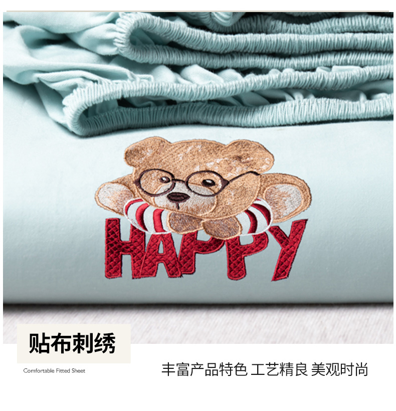 暖季家纺 2025新款A类全棉绣花立体贴布绣床笠-贝尔 贝尔-天空蓝