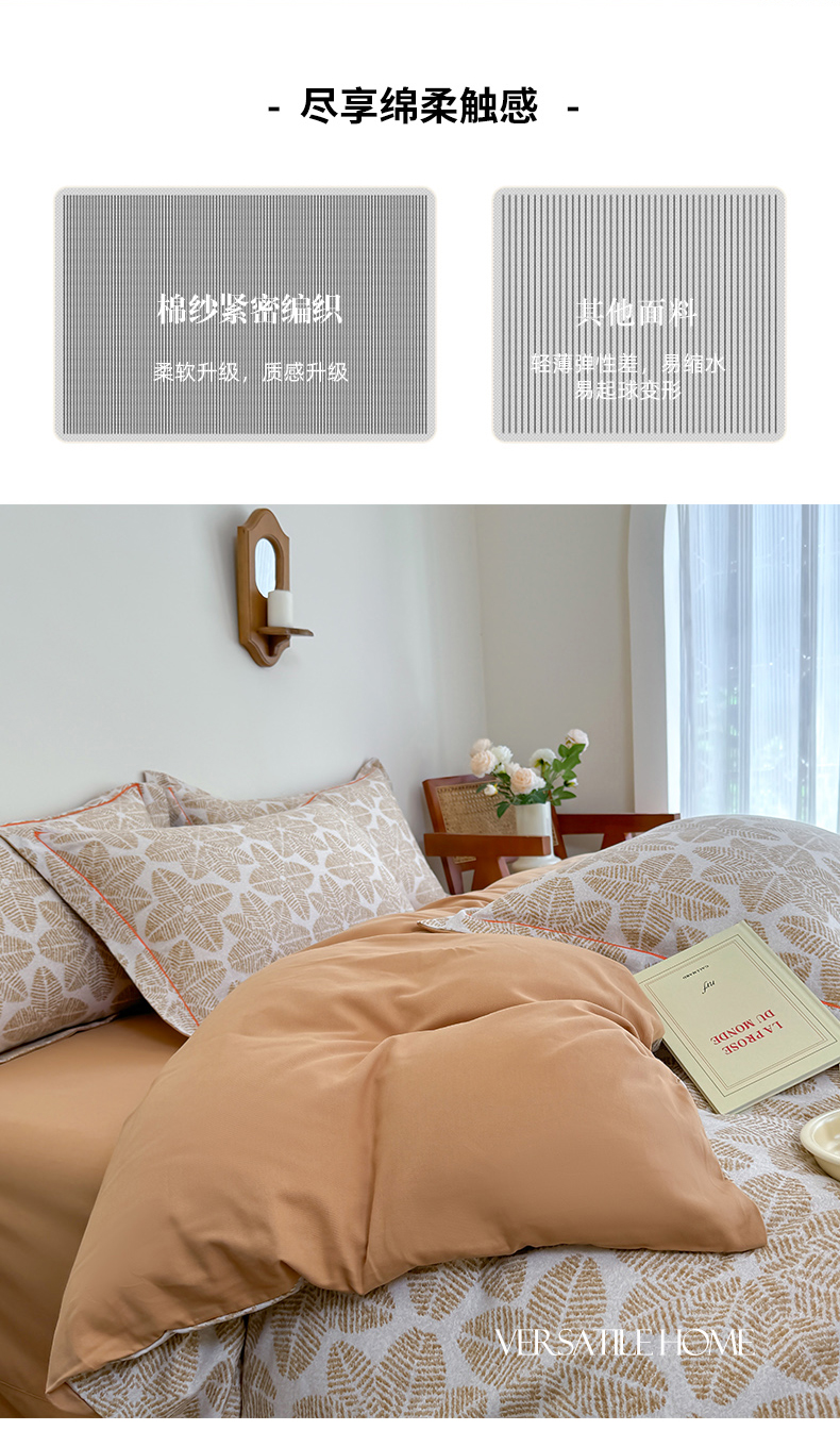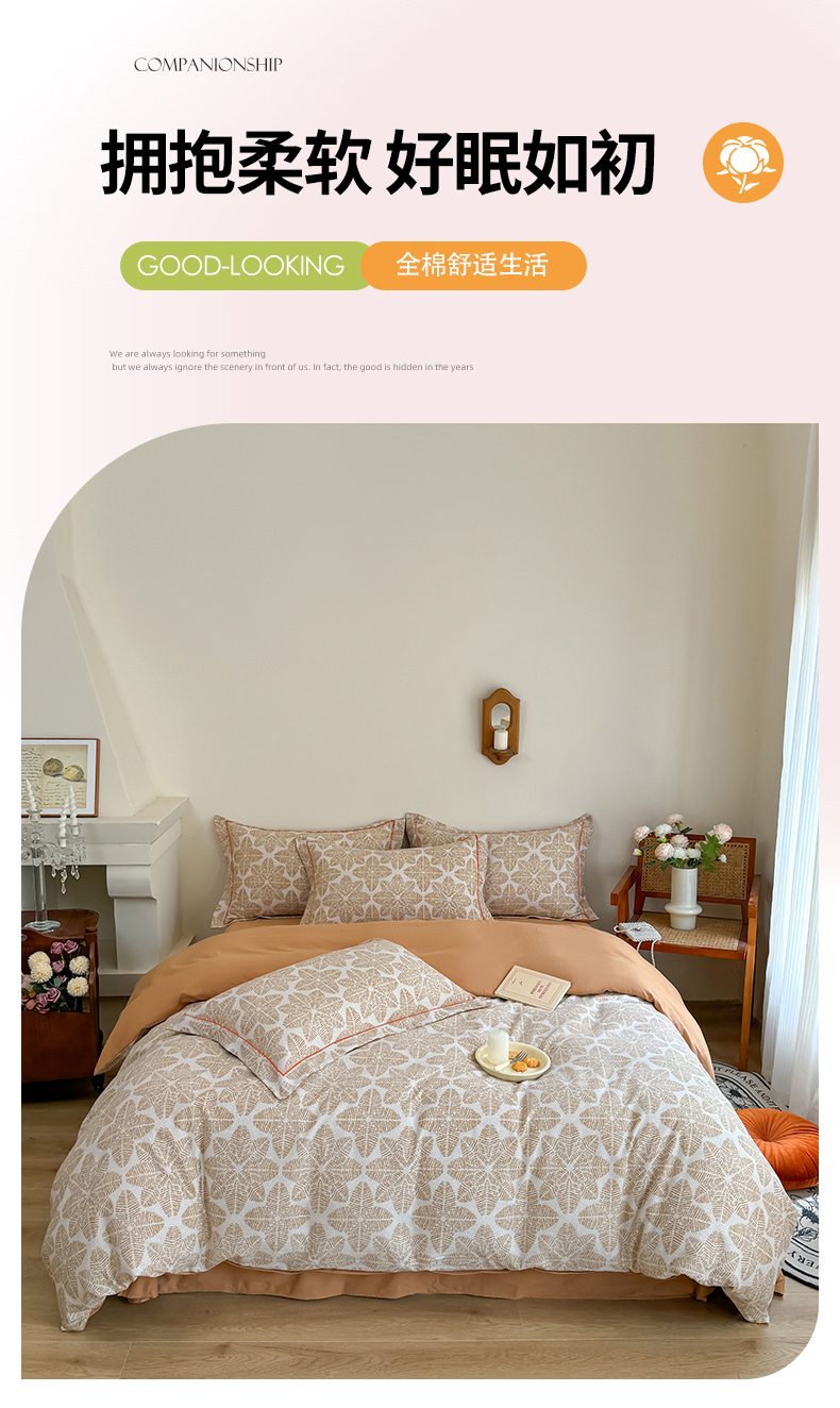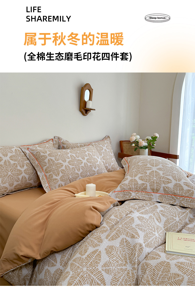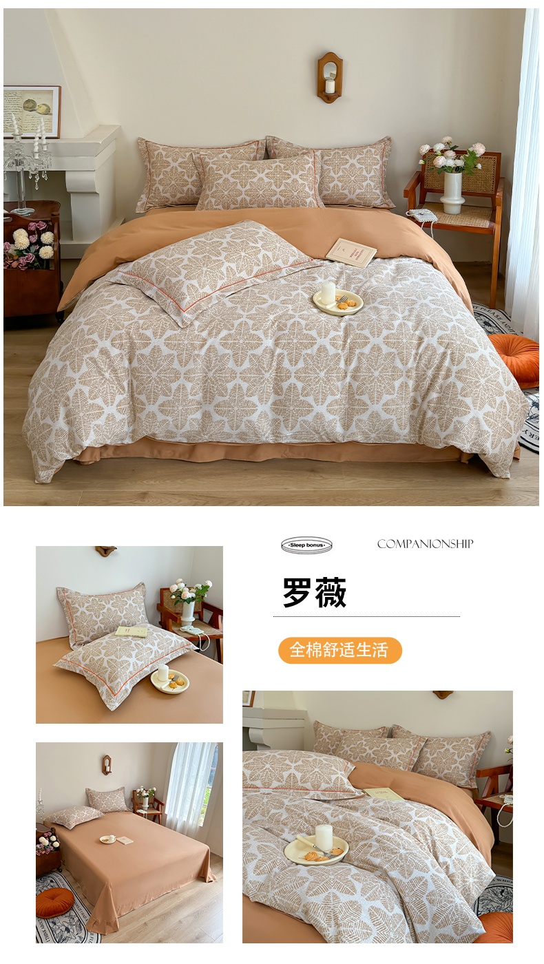 当前位置: 91家纺网 > 商品网购 > 床品套件 > 四件套 > 普通磨毛四件套 > 艾迪尚家纺 2025新款生态全棉磨毛印花四件套 罗薇