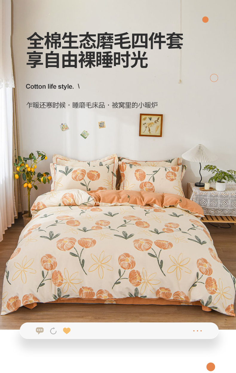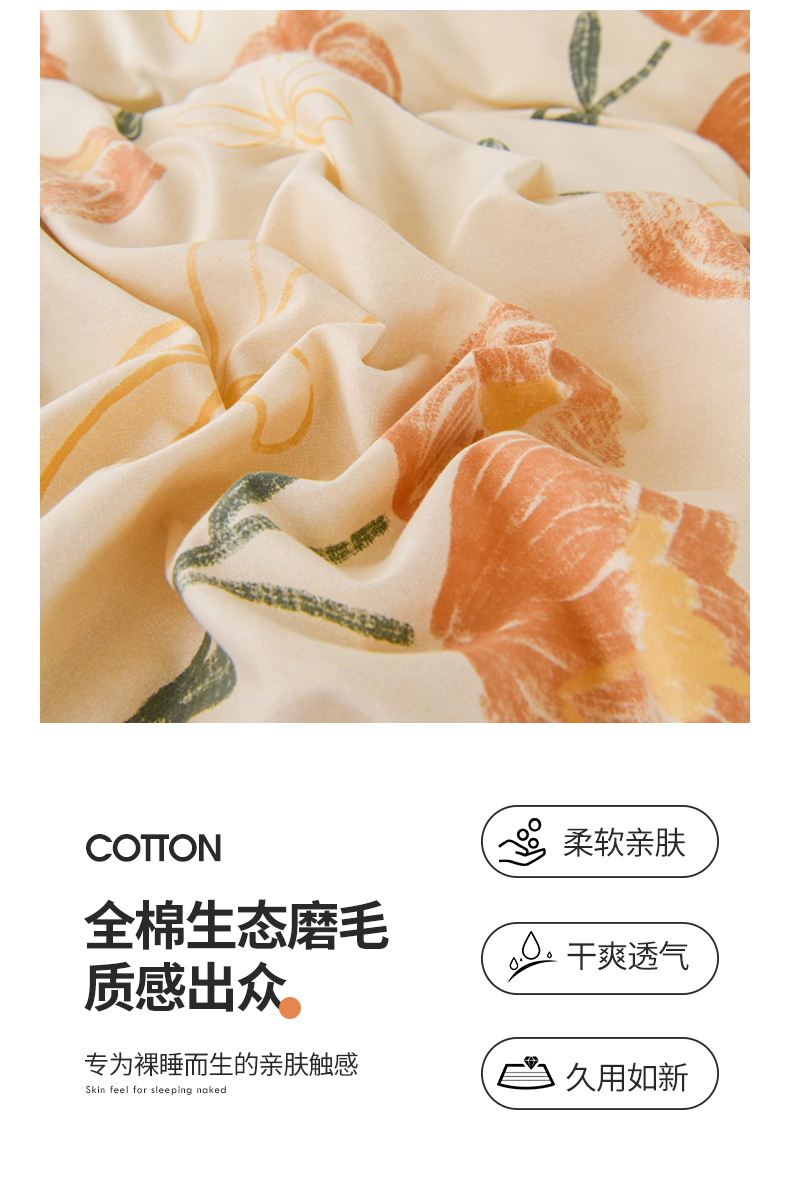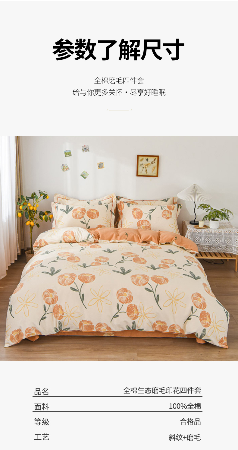 当前位置: 91家纺网 > 商品网购 > 床品套件 > 四件套 > 普通磨毛四件套 > 艾迪尚家纺 2025新款生态全棉磨毛印花四件套 怡悦