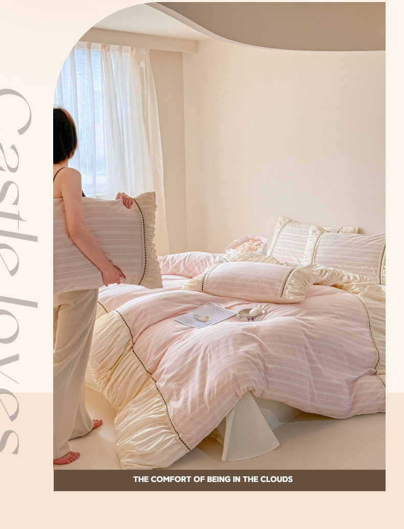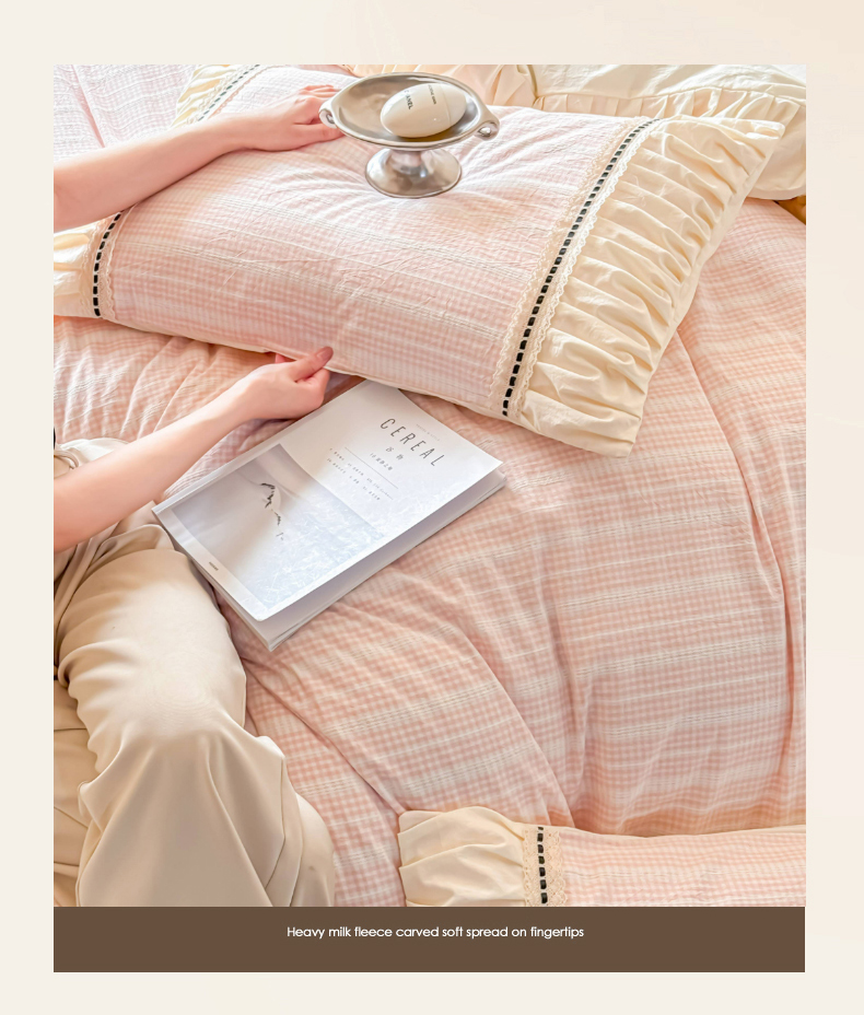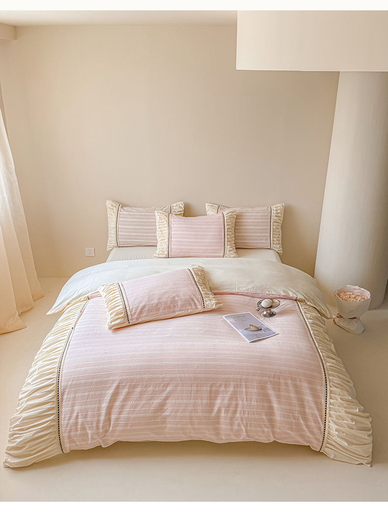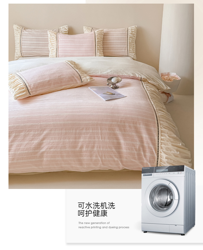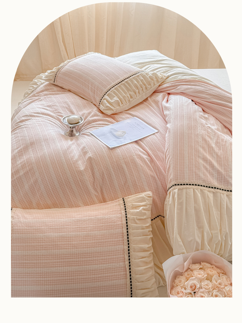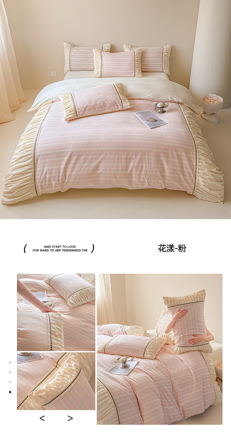 (总)玛奇朵 2025新款韩系少女全棉立体提花四件套-,青纱粉黛