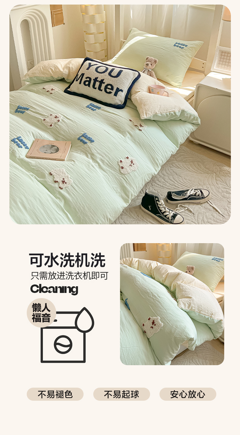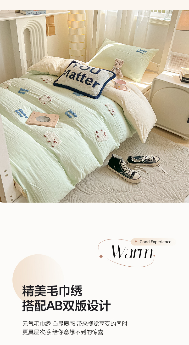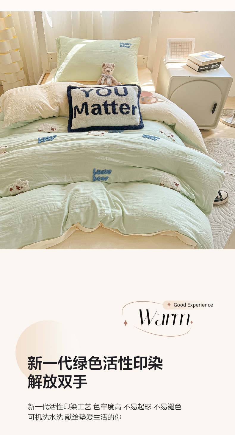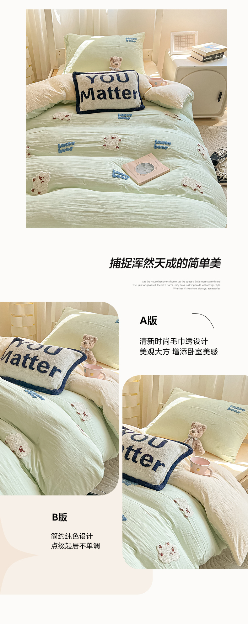 当前位置: 91家纺网 > 商品网购 > 床品套件 > 三件套 > 韩巢家纺 2024新款学生宿舍寝室上下铺超柔水洗棉毛巾绣被套床单三件套-小白熊(提供卖家秀) 小白熊 浅绿黄