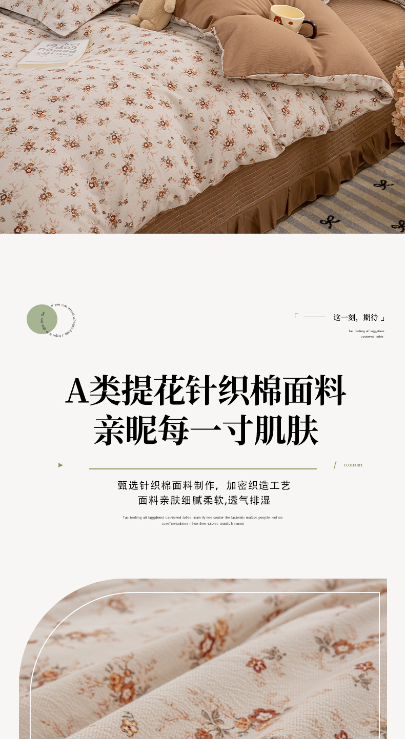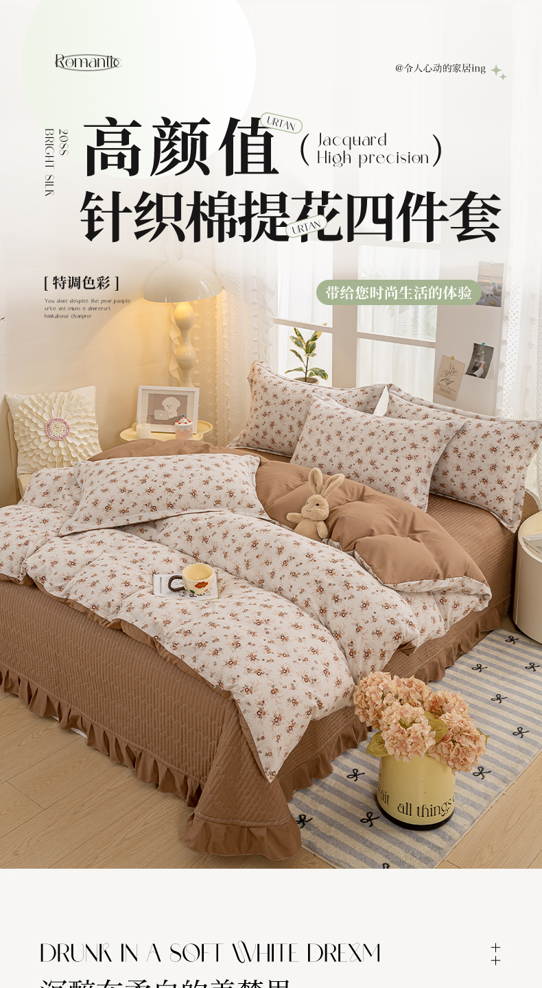 商品名称:富之航家纺2024新款小清新床盖四件套公主风提花针织棉床盖四件套 剪秋