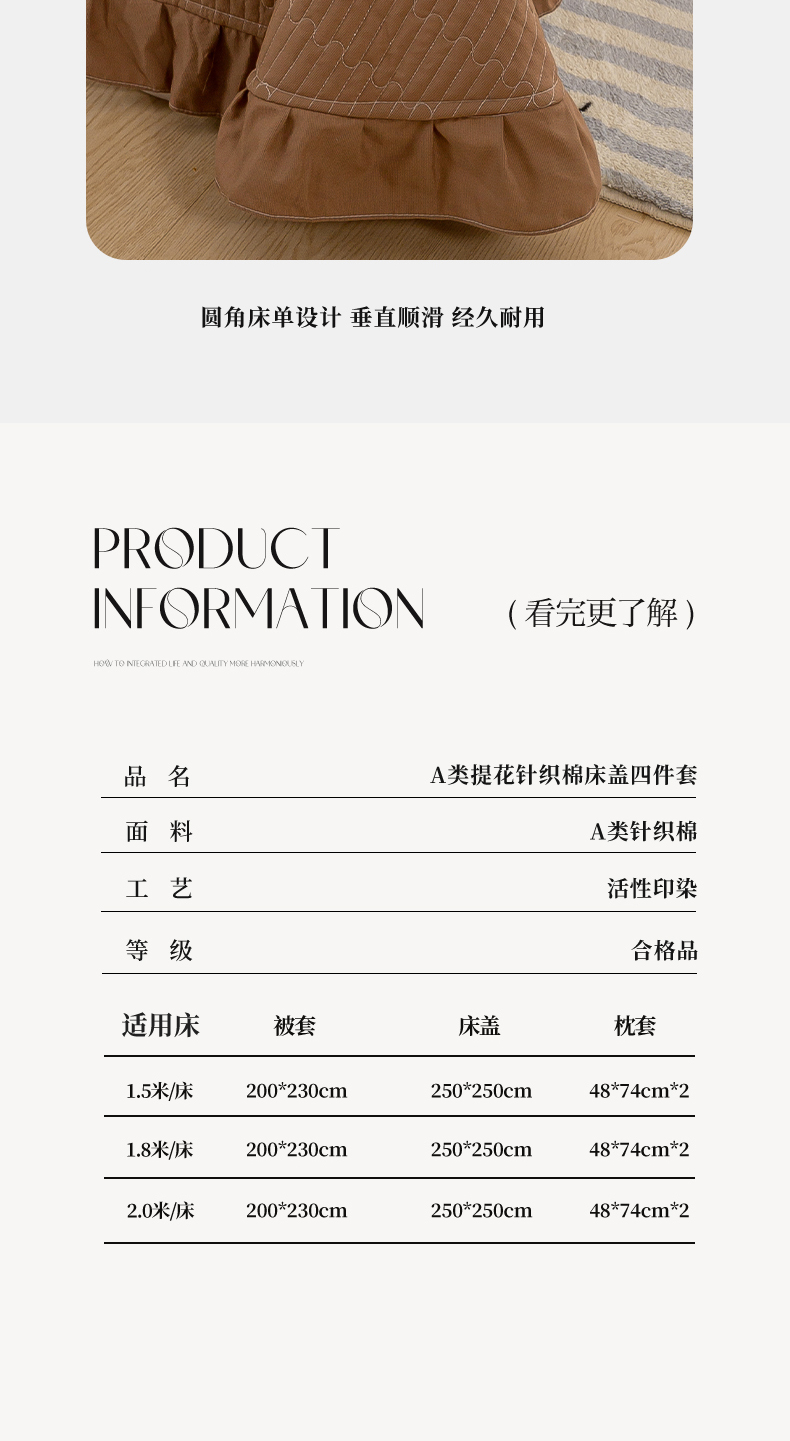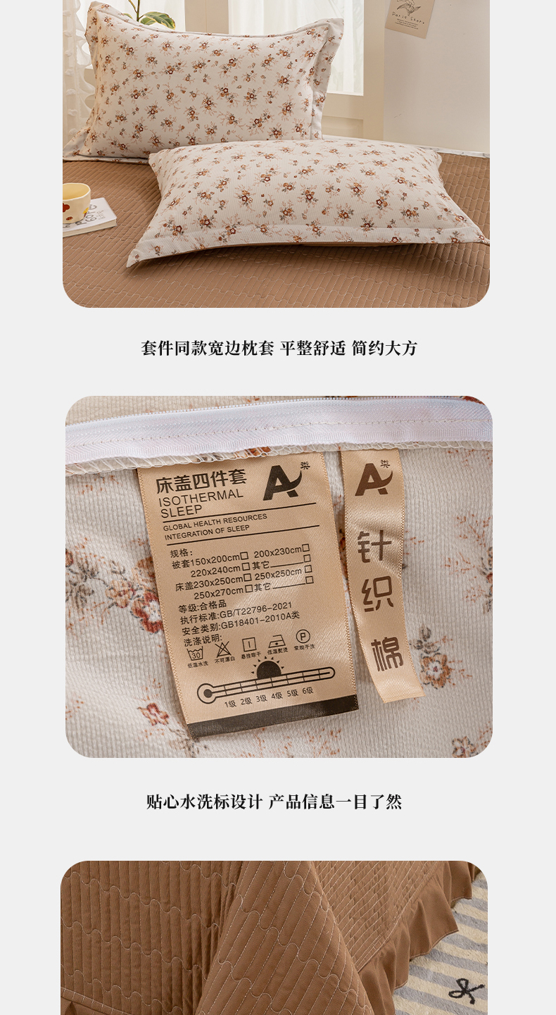 富之航家纺2024新款小清新床盖四件套公主风提花针织棉床盖四件套 剪秋