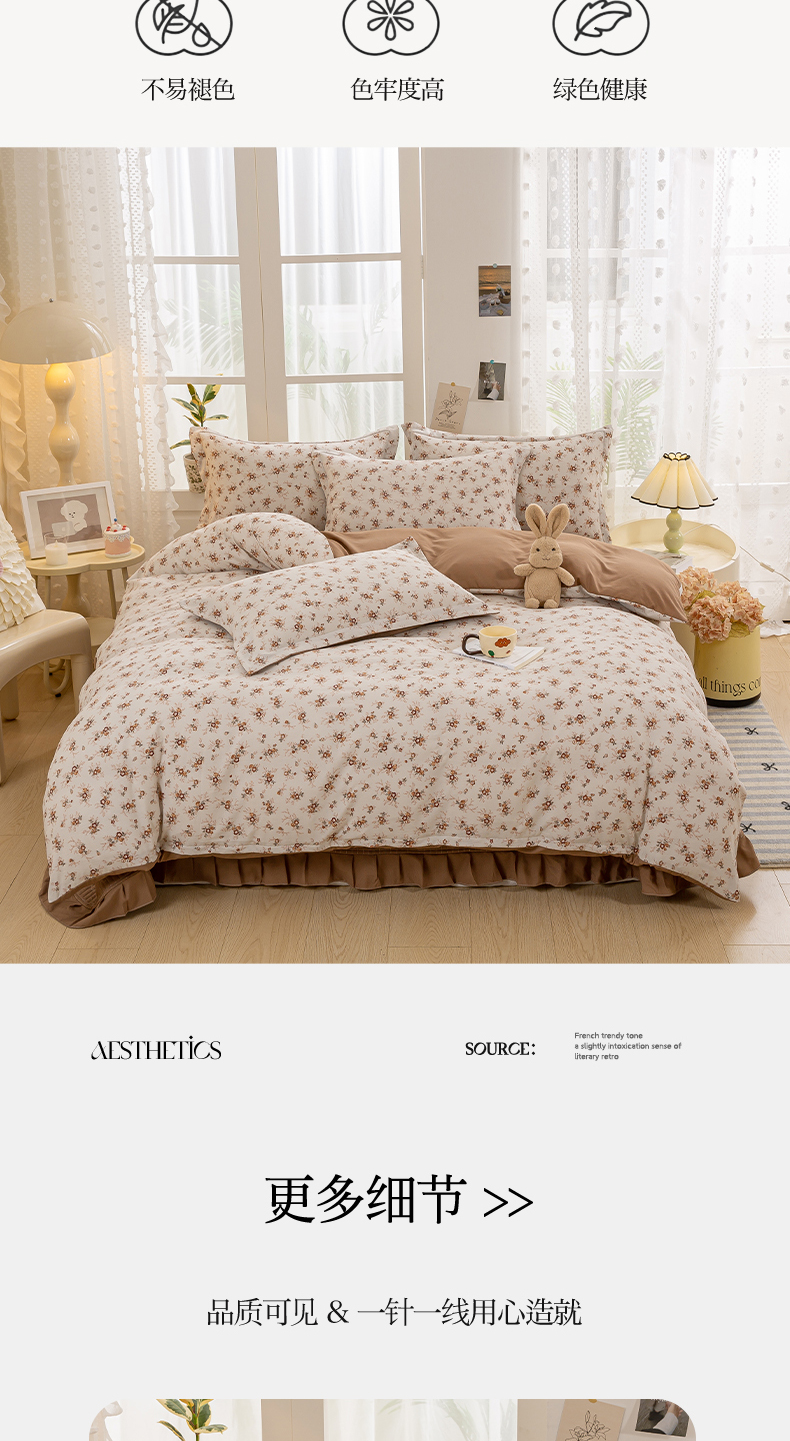 (总)富之航家纺 2025新款小香风赫本风ins风大牌韩版大花边轻奢牛奶绒四件套,蝶恋花,蝶栖,黑糖,楼桃,眠语,慕秋,叶叙,游园-白,游园-绿,紫萝