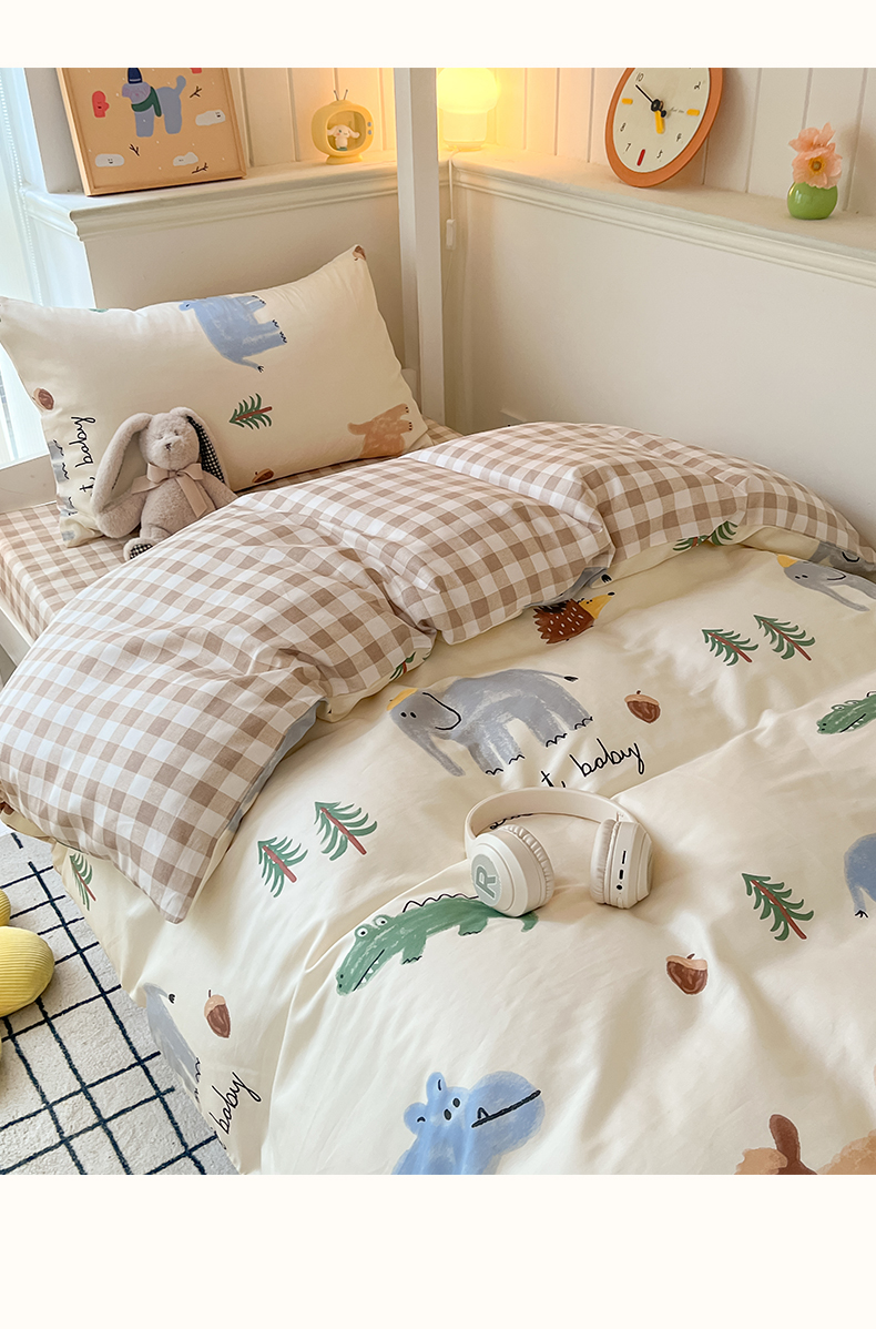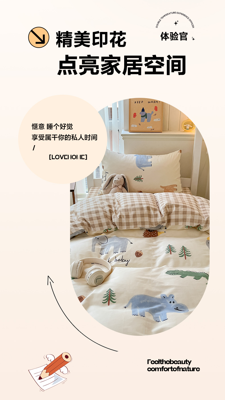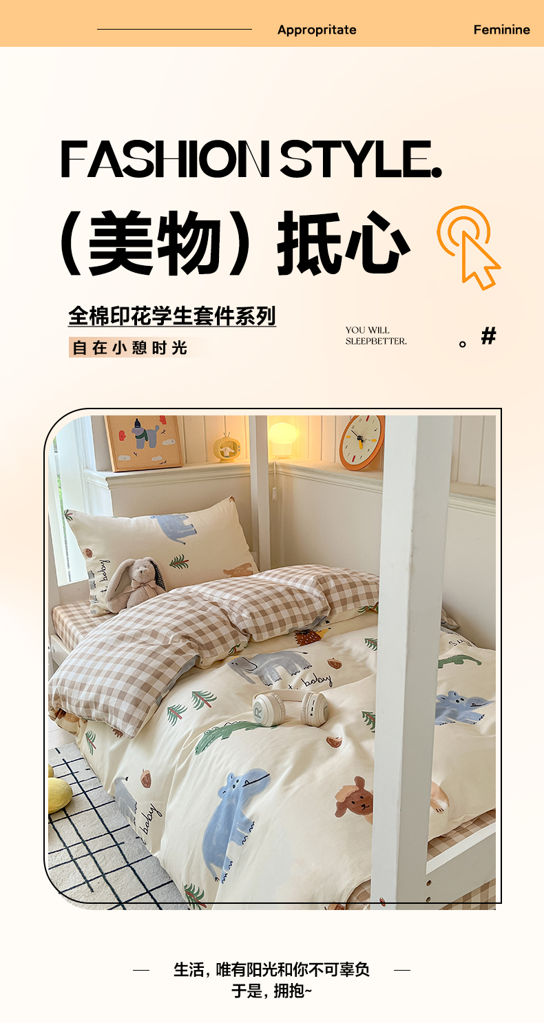 当前位置: 91家纺网 > 商品网购 > 床品套件 > 四件套 > 全棉普通四件套 > 雅居纺 2024新款全棉印花学生季套件 动物世界