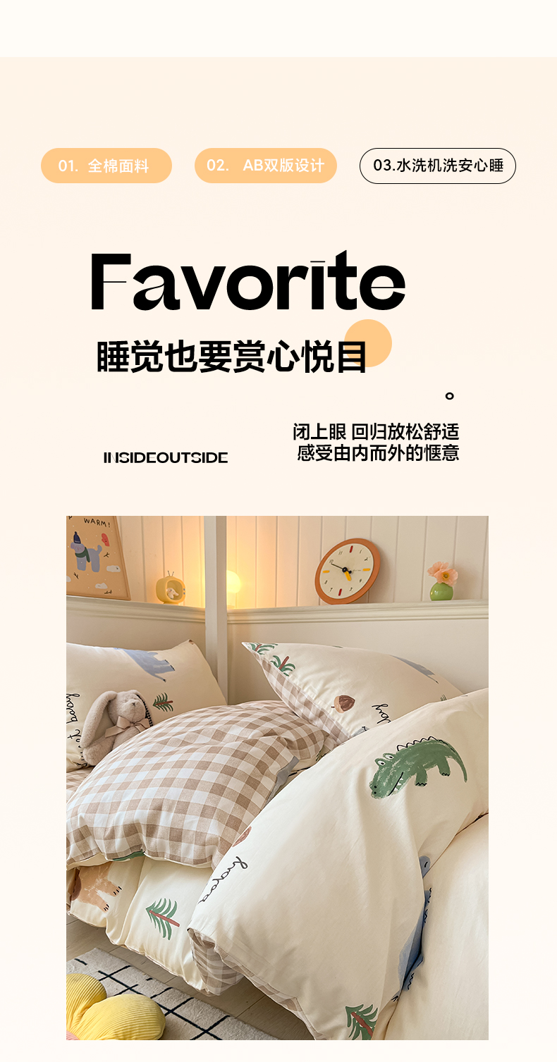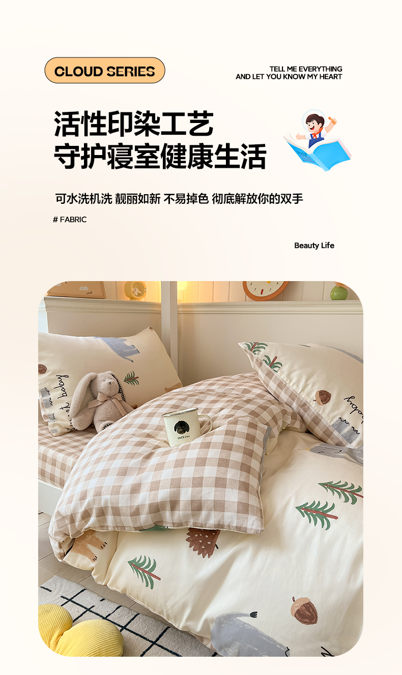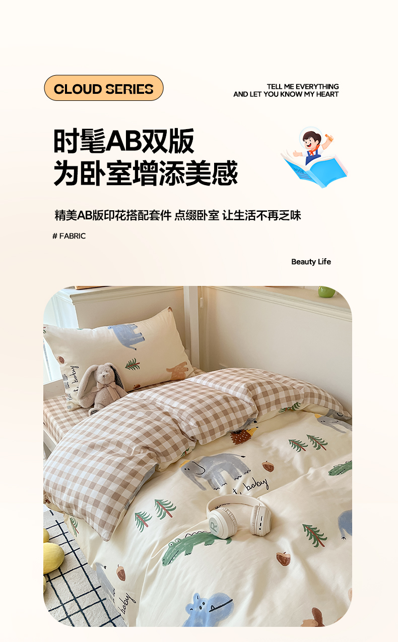 当前位置: 91家纺网 > 商品网购 > 床品套件 > 四件套 > 全棉普通四件套 > 雅居纺 2024新款全棉印花学生季套件 动物世界