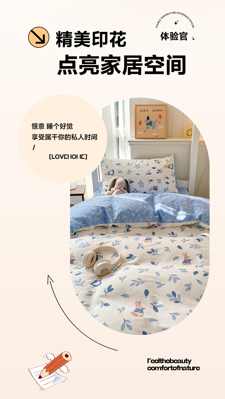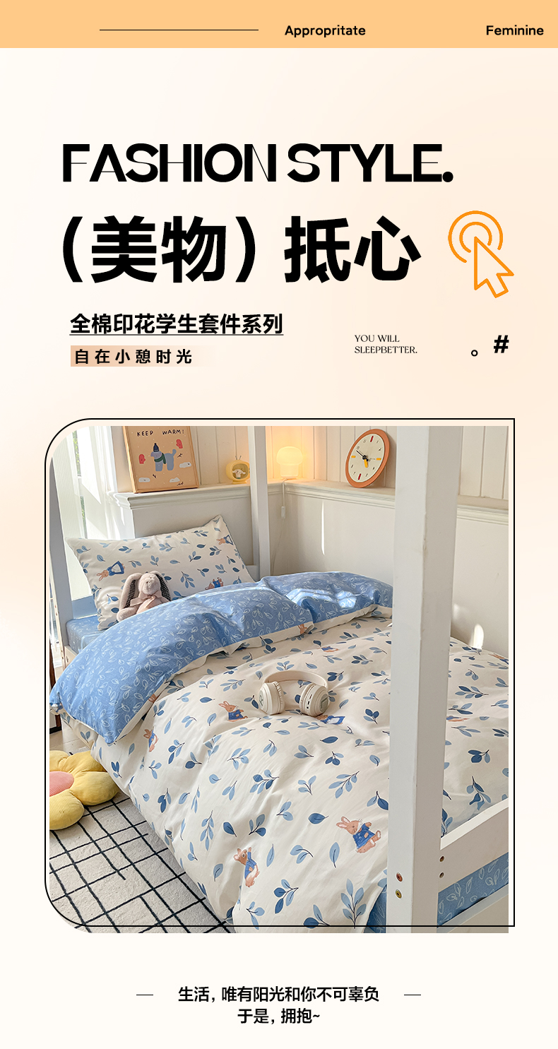 当前位置: 91家纺网 > 商品网购 > 床品套件 > 四件套 > 全棉普通四件套 > 雅居纺 2024新款全棉印花学生季套件 萌萌兔