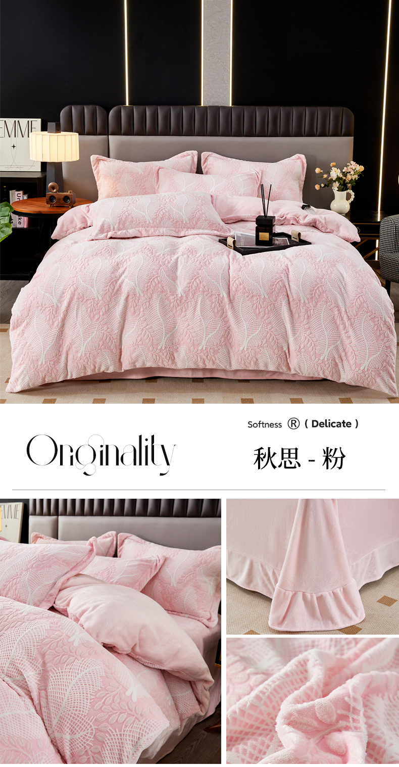商品名称:2024新款A类8斤雕花绒牛奶绒四件套 秋思-粉