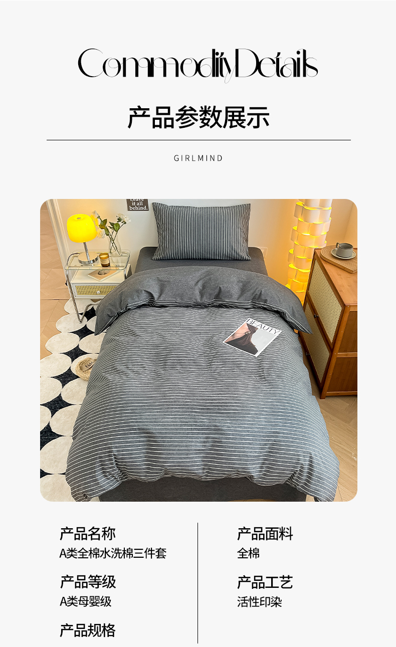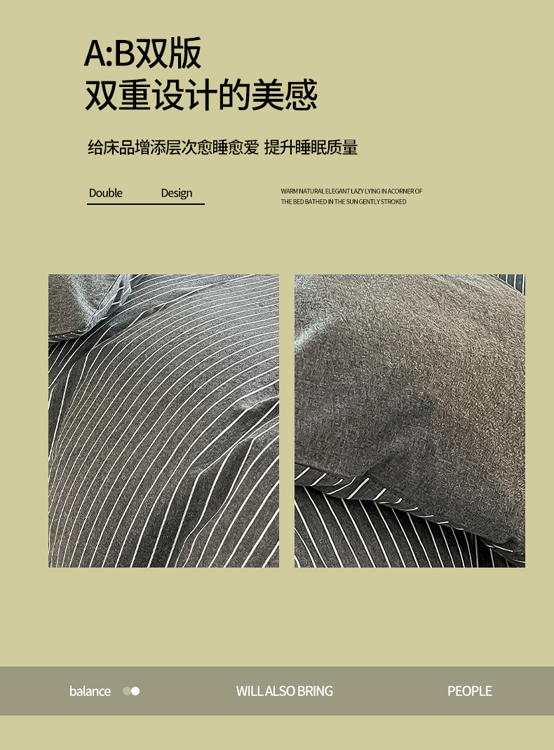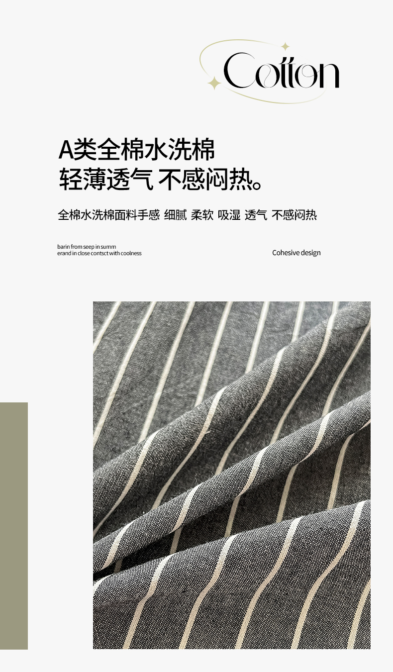 当前位置: 91家纺网 > 商品网购 > 床品套件 > 四件套 > 水洗棉四件套 > 蓝邻家纺 2024新款纯色水洗棉贴标四件套 灰细条