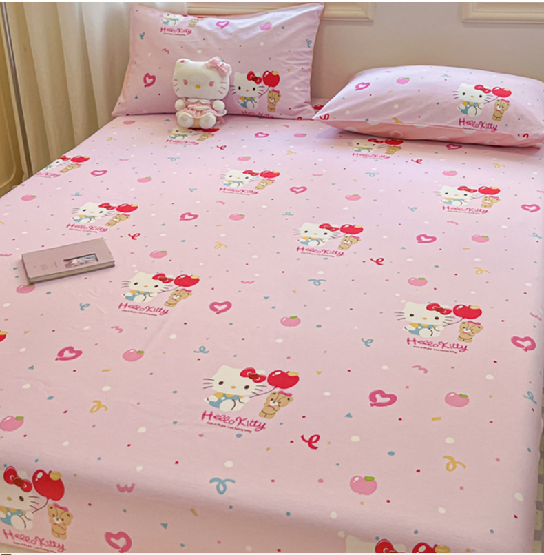 博雅 2024新款三丽鸥卡通系列全棉印花床笠 小熊苹果KT