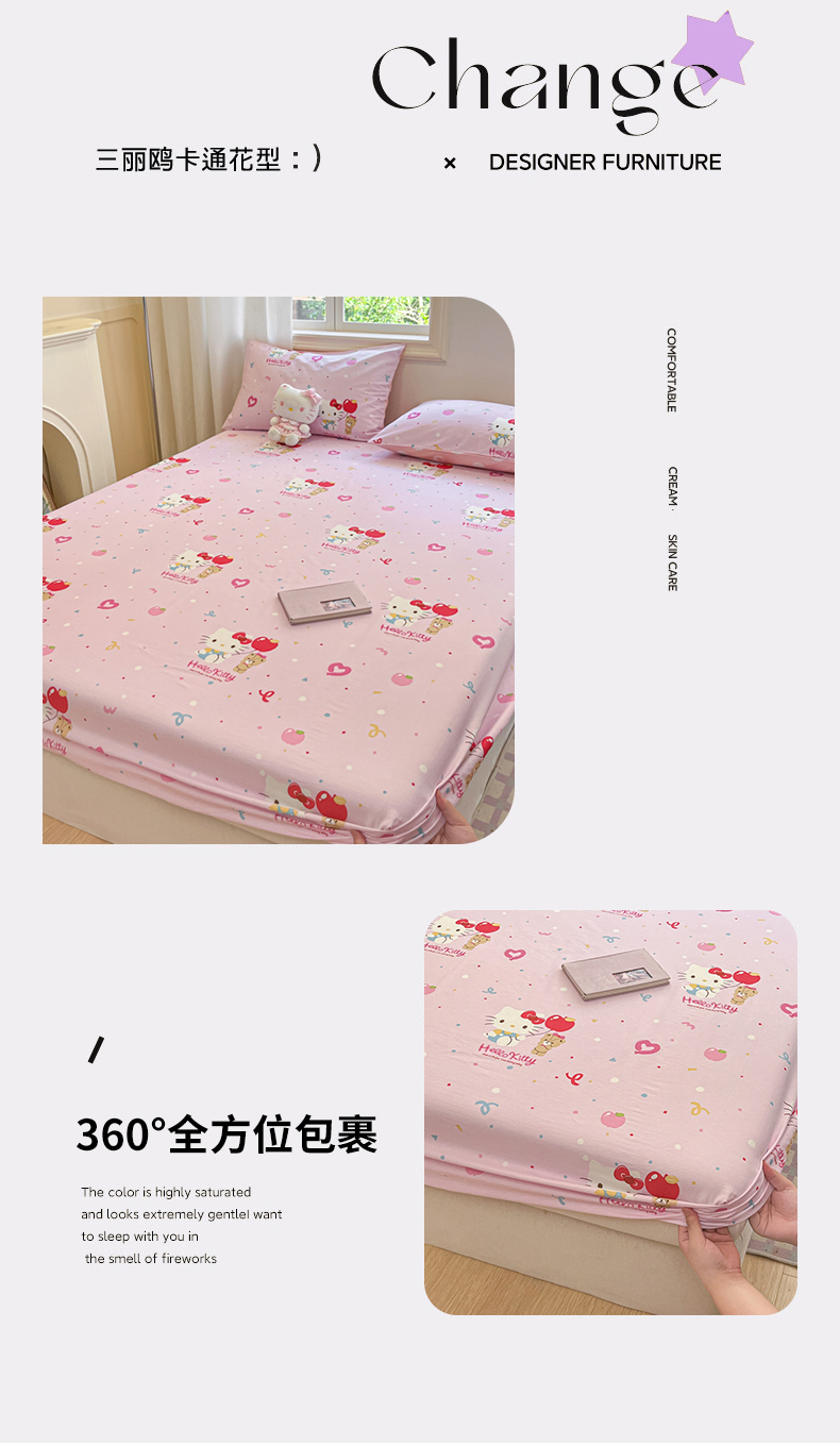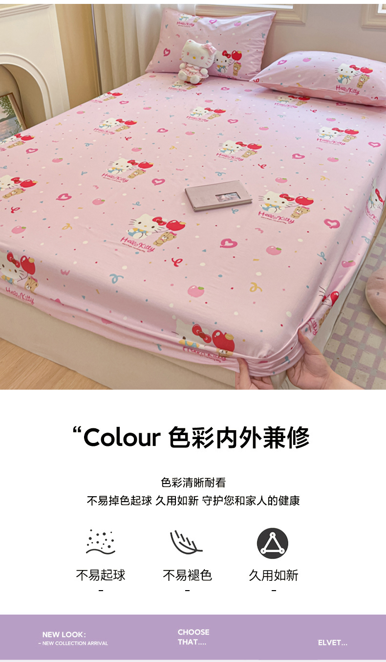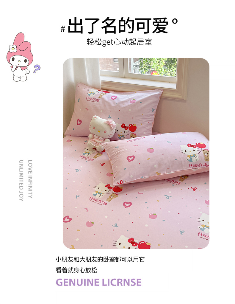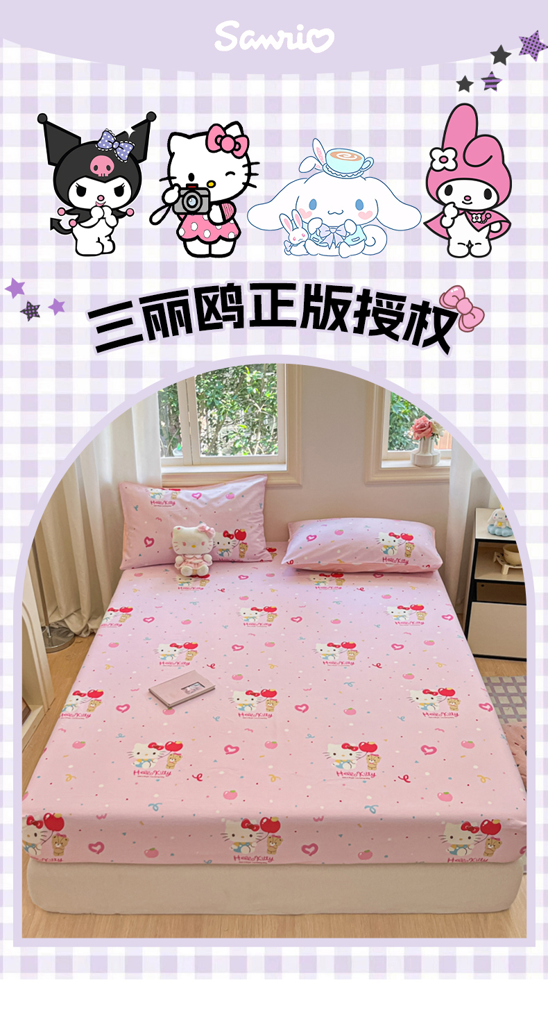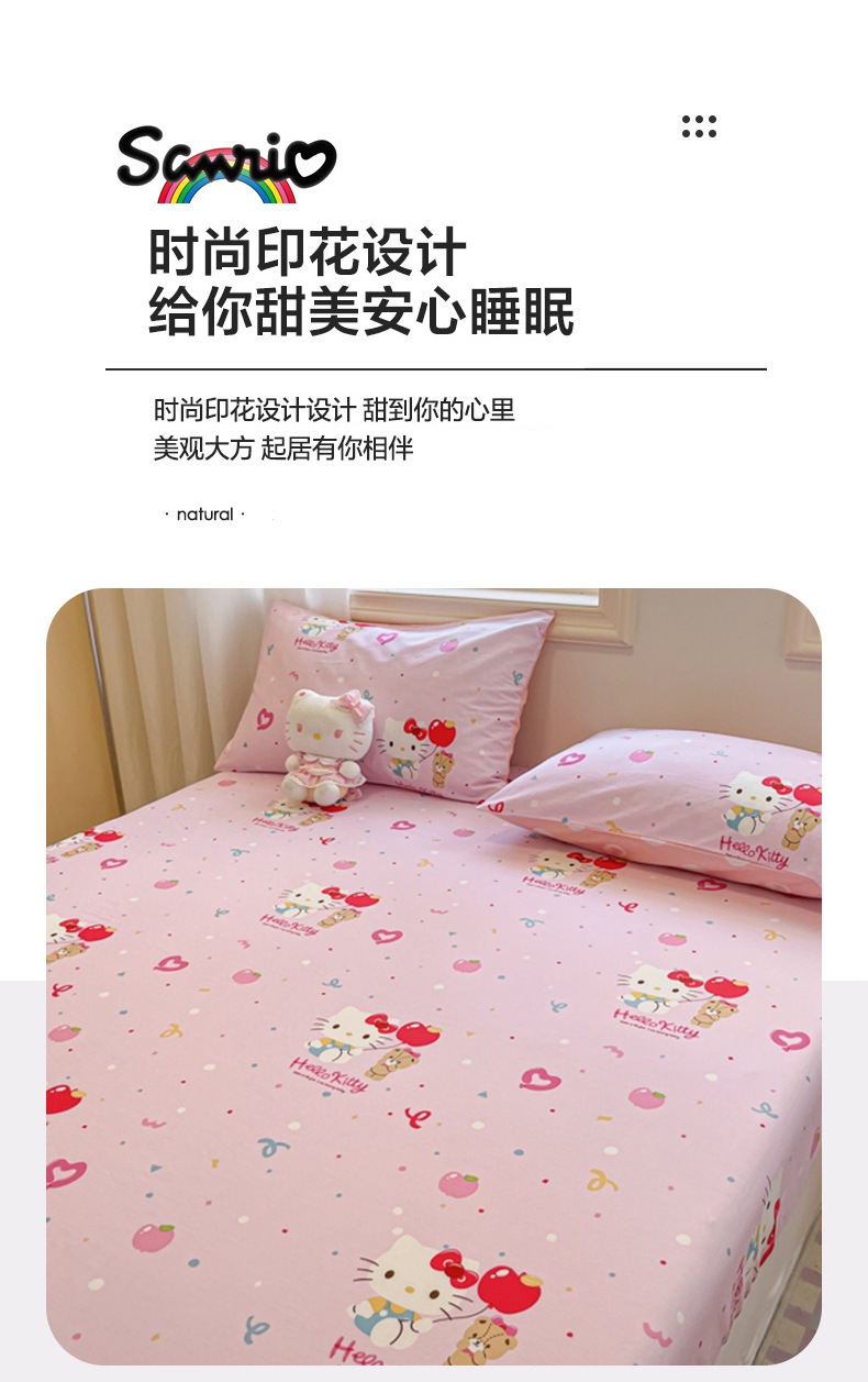 • 91家纺网 家纺一手货源 找家纺 博雅 2024新款三丽鸥卡通系列全棉印花床笠 小熊苹果KT
