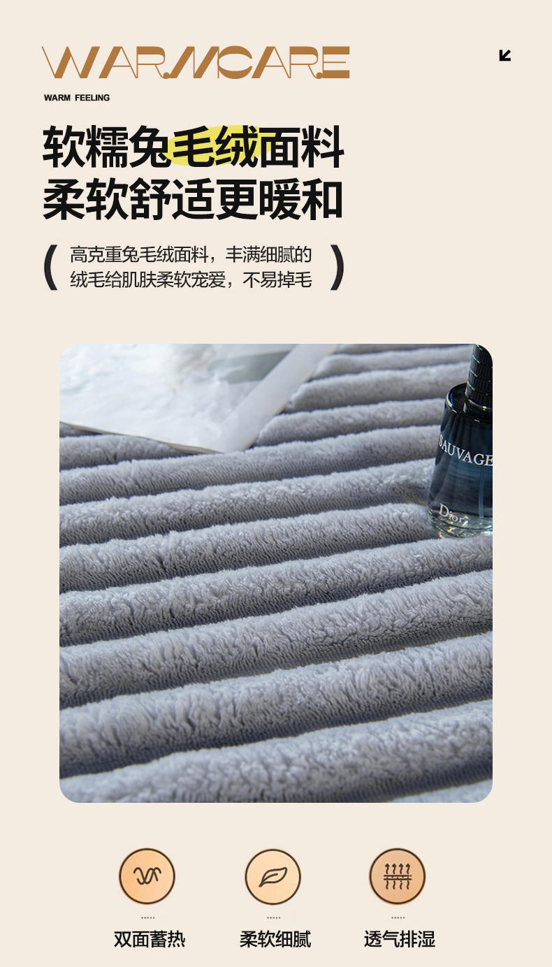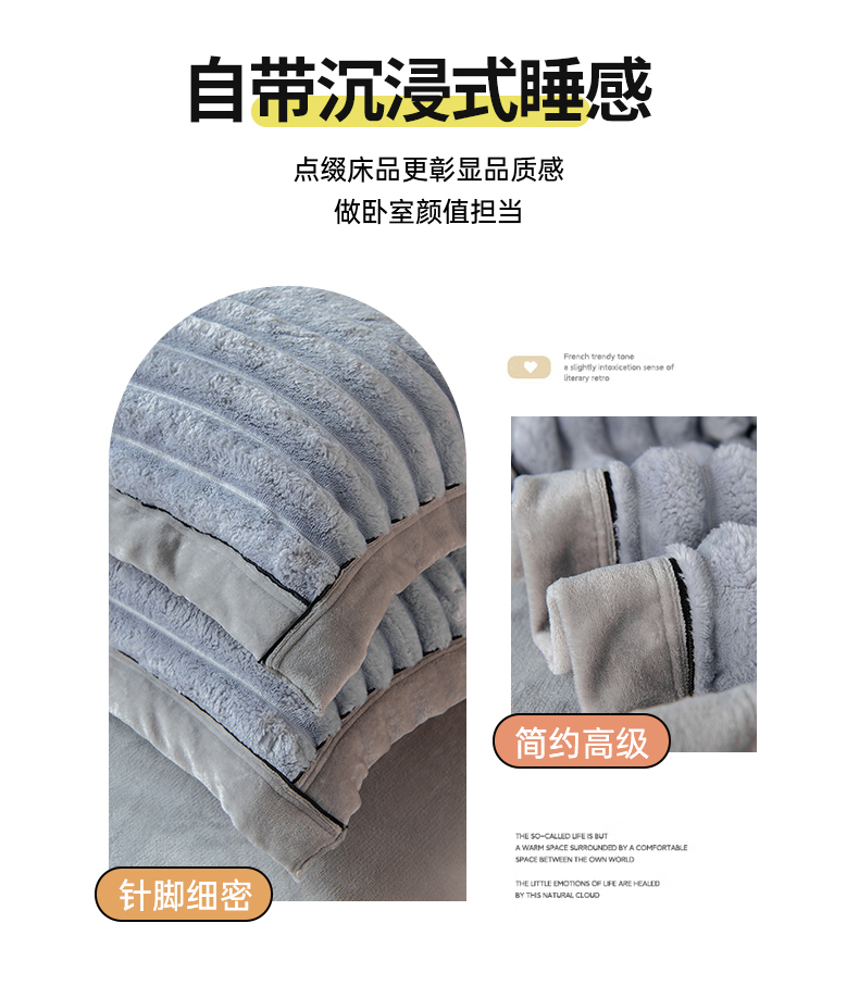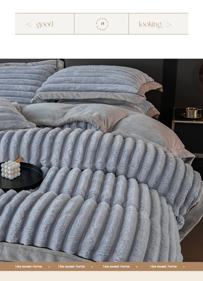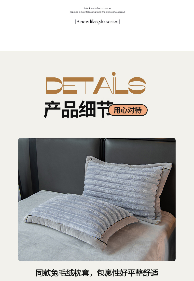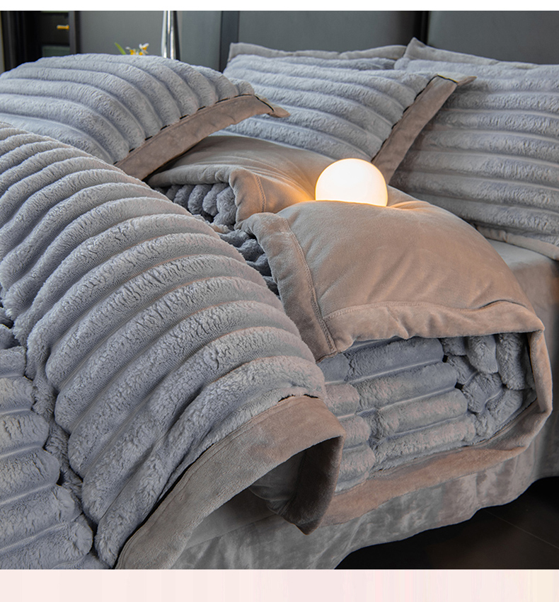商品名称:妮恒美家纺 2024新款400克超厚竖条兔毛绒四件套 竖条兔绒-典雅灰