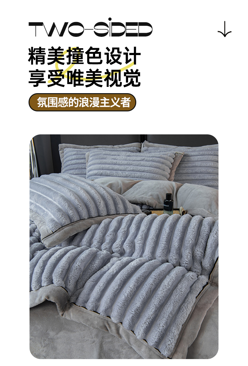妮恒美家纺 2024新款400克超厚竖条兔毛绒四件套 竖条兔绒-典雅灰