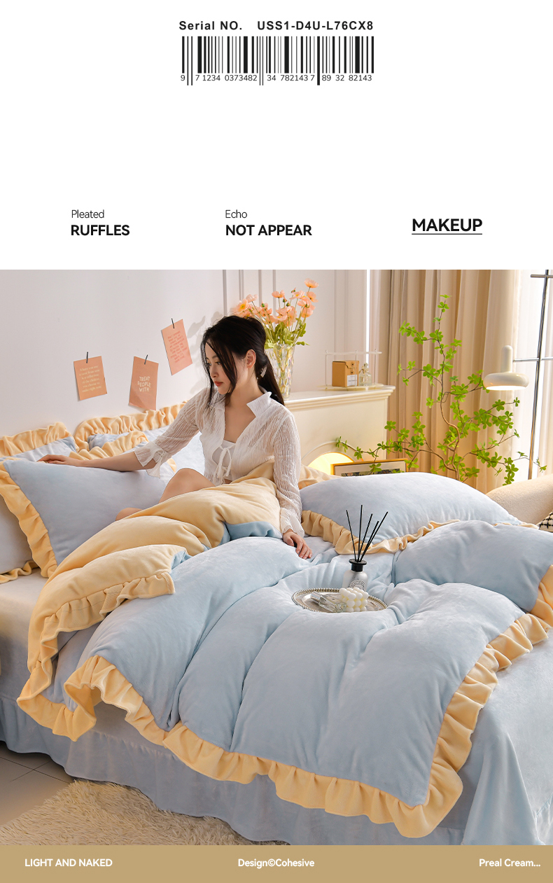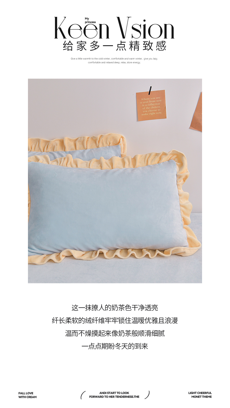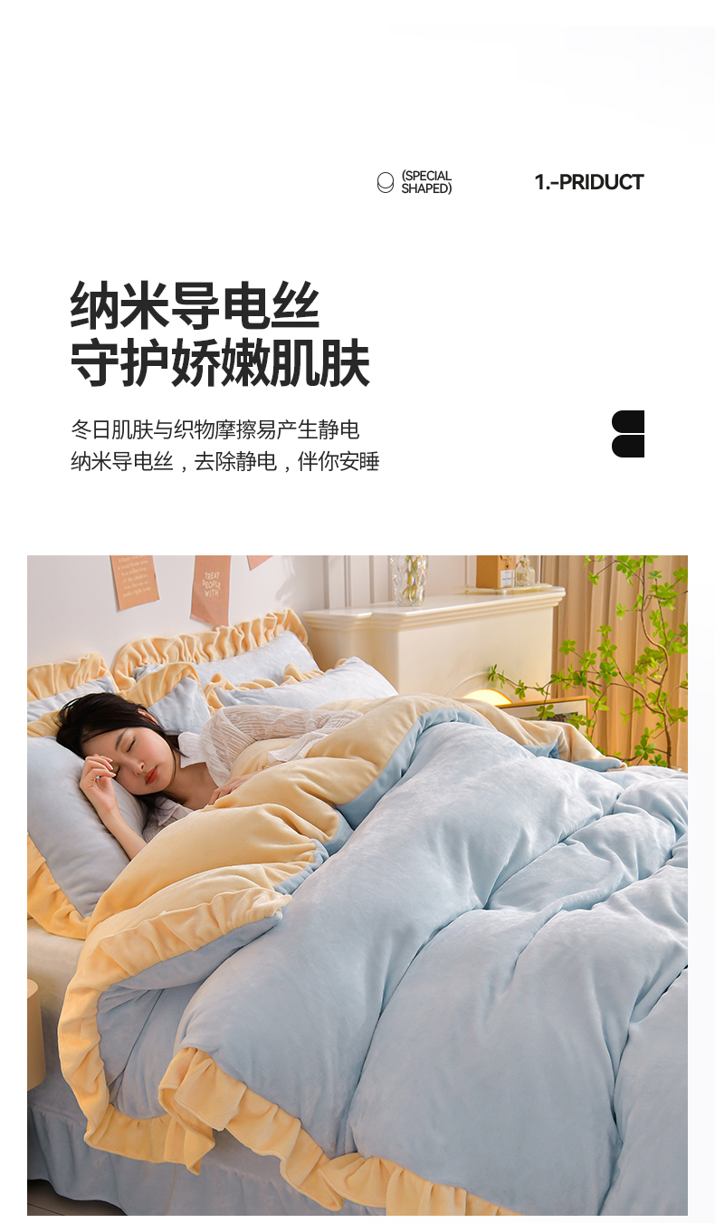 商品名称:妮恒美 2024新款韩版牛奶绒四件套 天海蓝+奶黄